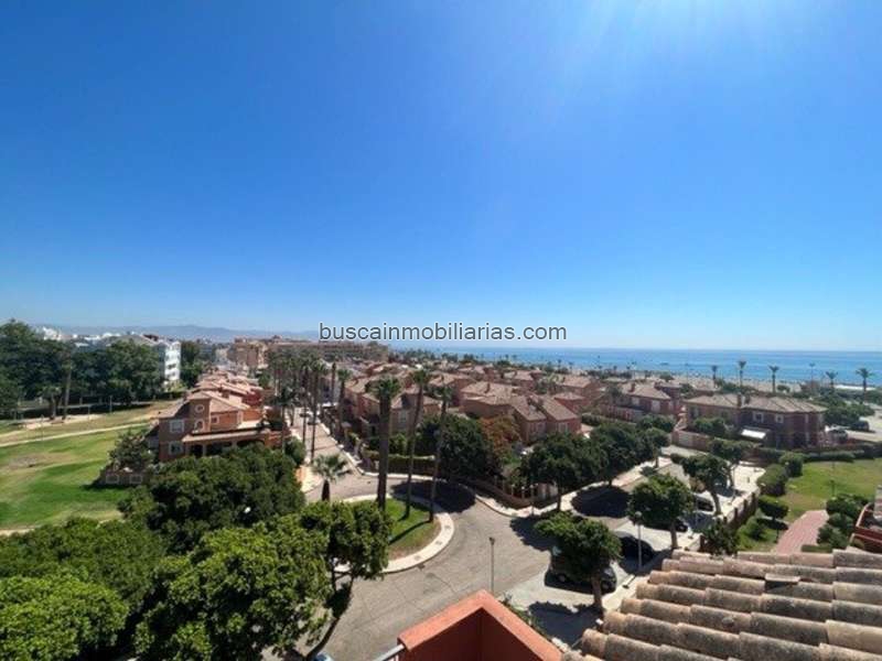 Amplio atico en Los Alamos -Playamar a pasos de la Playa y vistas panoramicas a playa ,montaña, jardines , hall de entrada , amplio salon con ventanal a terraza , un segundo ventanal a una terraza techada , ideal como terraza de invierno, tiene acceso a otra terraza grande con vistas a la playa , desde esta terraza tenemos una escalera que da acceso a terraza solarium de 30 metros con vistas abiertas y a la playa , cocina totalmente equipada con lavadero , 4 dormitorios con armarios , el principal en suite , 2 baños completos ,todas las habitaciones tienen salida a terraza , en los pasillos hay dos grandes armarios , el garaje y trastero en planta sotano , la urbanizacion tiene jardines y piscina, esta a pasos de todos los servicios , playa, tren de cercanias , campos de golf , centro comercial Plaza Mayor.