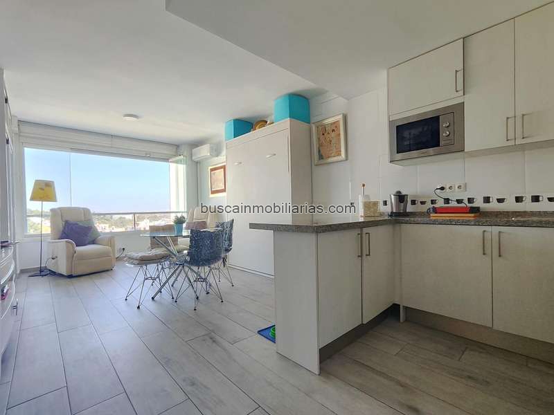 Esta propiedad cuenta con una superficie construida de 33 m2 y está lista para entrar a vivir. Disfruta de unas impresionantes vistas hacia la montaña y laterales al mar desde su salón-comedor luminoso que incluye cama abatible e instalación climatizada por split. La cocina americana completamente equipada se complementa con un baño moderno dotado de plato ducha.