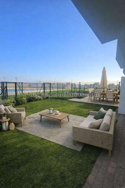 En la planta baja dispone de porche de entrada, cocina independiente, aseo de cortesía y salón comedor con salida directa a un segundo porche y jardín privado de aproximadamente 35 m2.