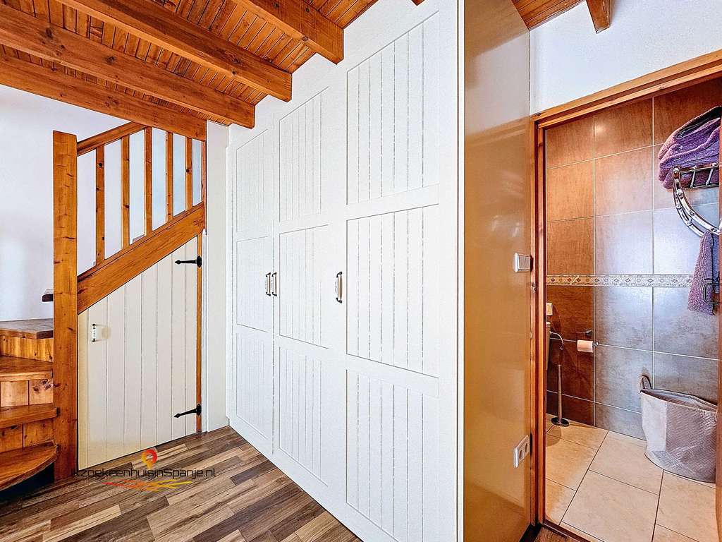 La planta superior dispone de un espacio distribuidor que da acceso a una terraza en la azotea con vistas abiertas al entorno.