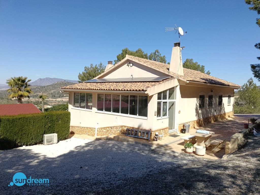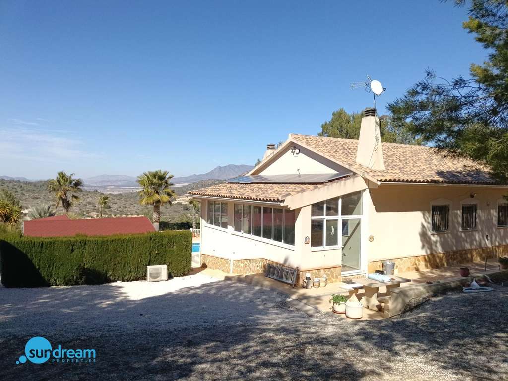 Encantadora villa rural en La Zarza – El Pinoso con piscina climatizada y amplio terreno Ubicada en la tranquila zona rural de La Zarza, cerca de Pinoso, esta encantadora villa independiente combina a la perfección la belleza del campo con el confort moderno. Rodeada de vistas abiertas a la montaña y paisajes naturales intactos, la propiedad ofrece privacidad, amplios espacios y un auténtico estilo de vida mediterráneo, todo a una distancia cómoda de la costa. Situada sobre una impresionante parcela de 8.521 m², la villa tiene orientación suroeste, lo que permite que la casa y sus terrazas se llenen de luz natural durante todo el día y disfrutar de espectaculares puestas de sol por la tarde. Los jardines, cuidadosamente mantenidos, cuentan con zonas exteriores acogedoras y rincones tranquilos pensados para una vida relajada en el campo. La vivienda ofrece una superficie construida de 202 m² con un diseño cálido y acogedor. En el interior, encontramos cuatro luminosos dormitorios –uno de ellos actualmente utilizado como oficina– y dos baños completos, uno de ellos en suite. La cocina de diseño, recientemente renovada y equipada con electrodomésticos de alta gama, se integra de manera fluida con el amplio salón-comedor, creando el corazón práctico y elegante del hogar. Una chimenea tradicional aporta encanto y confort durante los meses más frescos, mientras que la calefacción central y el aire acondicionado garantizan bienestar durante todo el año. La villa se vende completamente amueblada y lista para entrar a vivir. La sostenibilidad también es una característica destacada, con 16 paneles solares que suministran electricidad y 4 paneles adicionales dedicados a la calefacción de la piscina. El exterior eleva realmente esta propiedad. Una piscina privada climatizada de 12 metros permite disfrutarla durante todo el año. La pérgola con cocina exterior, barbacoa integrada y zona de bar es ideal para entretener a familiares y amigos. Un luminoso jardín de invierno ofrece el lugar perfecto para comer al aire libre o simplemente relajarse mientras se disfruta del entorno tranquilo. La parcela está bellamente ajardinada e incluye un encantador jardín de cactus, olivos y almendros, reforzando el auténtico ambiente mediterráneo. Otras características incluyen aparcamiento privado, un cobertizo de madera y un amplio trastero/taller de 30 m² situado bajo la terraza. Ubicación conveniente: A solo 12 minutos de servicios locales, tiendas y restaurantes A 60 minutos de las playas del Mediterráneo A 60 minutos del aeropuerto internacional Ya sea como residencia permanente, vivienda vacacional o inversión en turismo rural, esta villa en La Zarza ofrece una oportunidad única de disfrutar de tranquilidad, naturaleza y confort en un entorno excepcional.