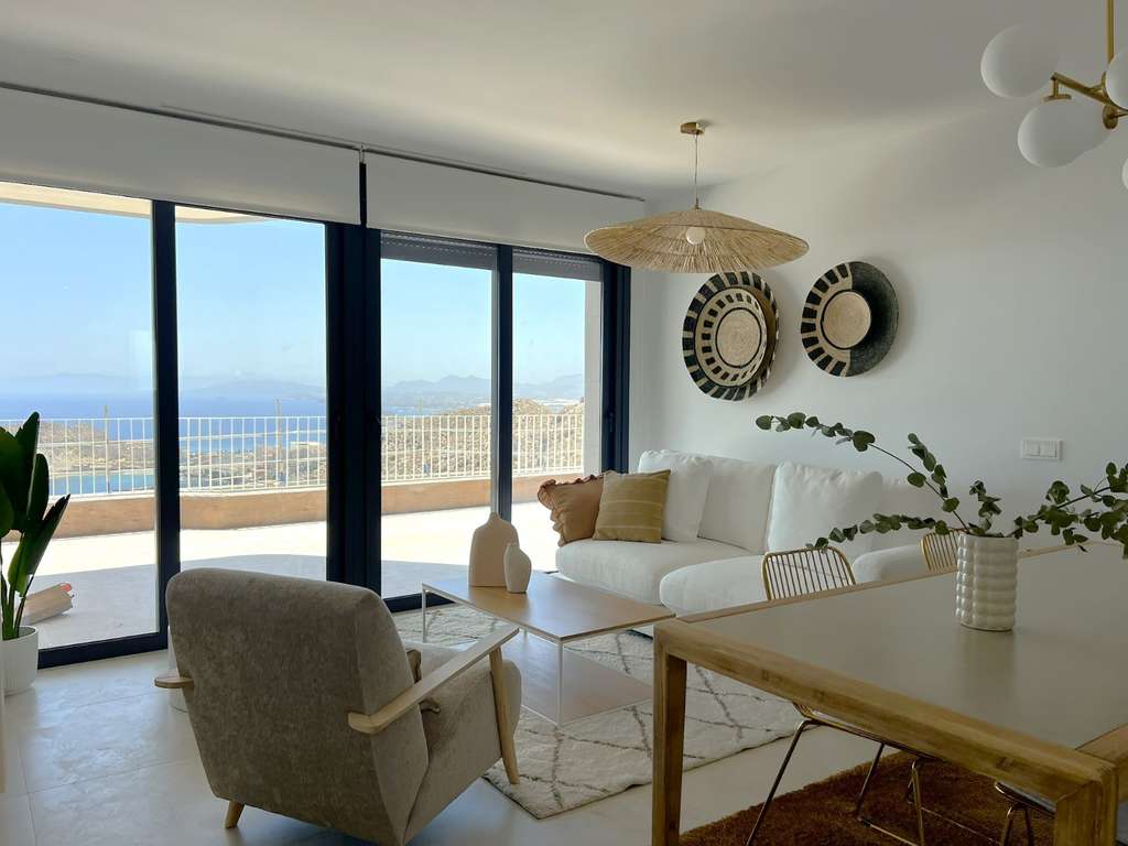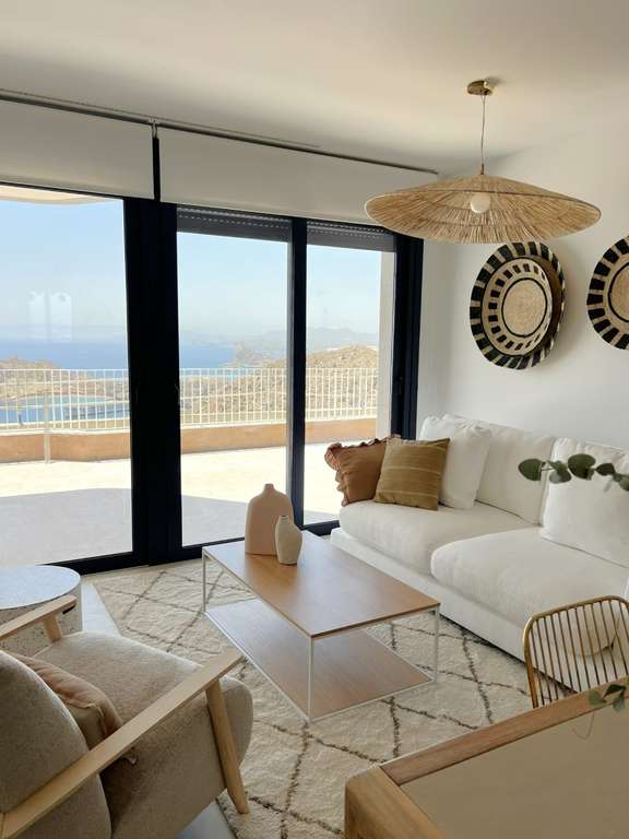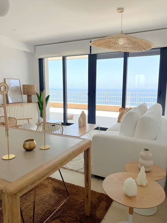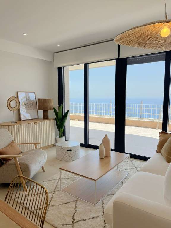 Gracias a su ubicación elevada, las viviendas han sido diseñadas para aprovechar al máximo la luz natural, con vistas espectaculares del Mar Mediterráneo desde sus amplias terrazas.