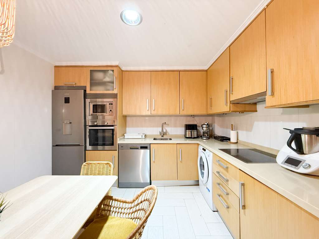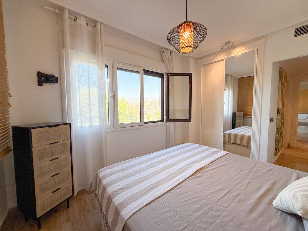 Superficie: 130 m².Distribución: 3 dormitorios con armarios empotrados y 2 baños.Cocina: Independiente y espaciosa, con lavadero funcional.Salón-Comedor: Luminoso, con acceso directo a un balcón terraza que ofrece impresionantes vistas a las montañas.