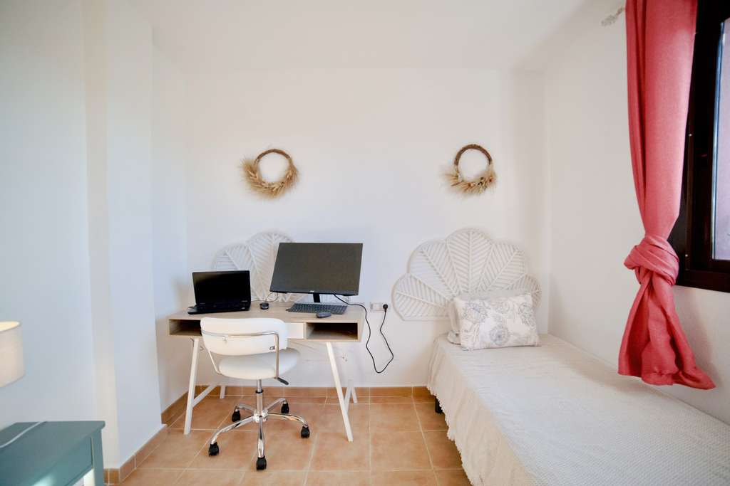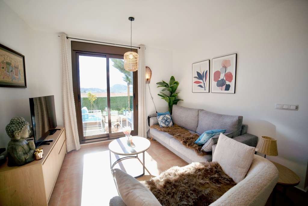 La vivienda cuenta con 2 dormitorios y 2 baños, diseñada pensando en la comodidad y el bienestar. El apartamento dispone de una amplia terraza privada, perfecta para relajarse, disfrutar de una taza de café o compartir comidas al aire libre mientras se contempla el entorno natural que rodea la urbanización.