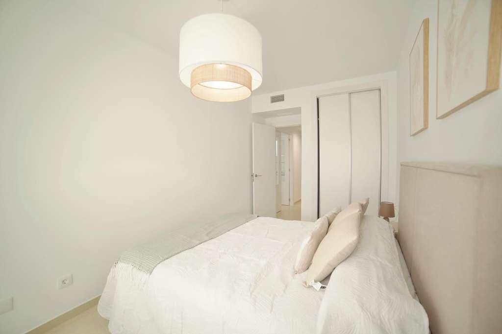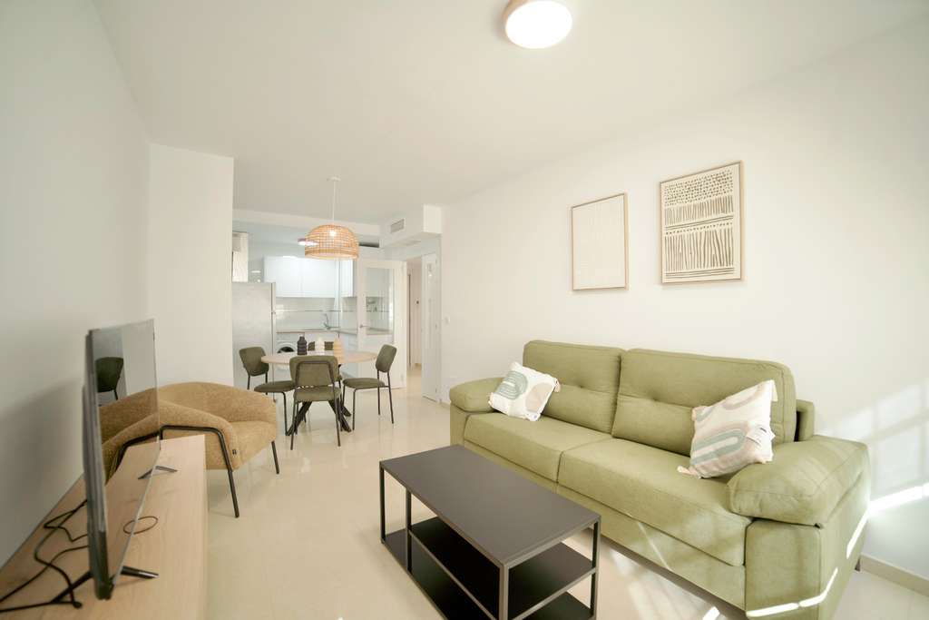 La vivienda dispone de 1 dormitorio y 1 baño completo, además de salón-comedor espacioso con mucha luz natural con cocina abierta La vivienda está construida con materiales de excelente calidad, como suelos rectificados, puertas interiores lacadas en blanco, armarios empotrados con puertas correderas y revestimiento interior en madera, paredes con acabado liso, molduras decorativas y carpintería exterior de aluminio doble climalit. El precio incluye plaza de garaje y trastero. Ubicada a solo 150 metros del mar, esta propiedad ofrece una situación privilegiada para disfrutar de la playa y del entorno durante todo el año. Una excelente oportunidad para quienes buscan una vivienda cómoda, luminosa y cerca de la costa. Los gastos asociados a la compraventa, como impuestos, gastos de notaría y registro, así como los honorarios de la agencia, no están incluidos en el precio.