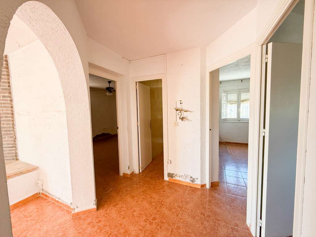 La propiedad cuenta con una parcela de 1.208 m², ofreciendo amplios espacios exteriores para disfrutar al aire libre. La vivienda dispone de aproximadamente 130 m² construidos, distribuidos en varios dormitorios, 1 baño completo, una cocina independiente amplia con chimenea y estancias cómodas y funcionales.