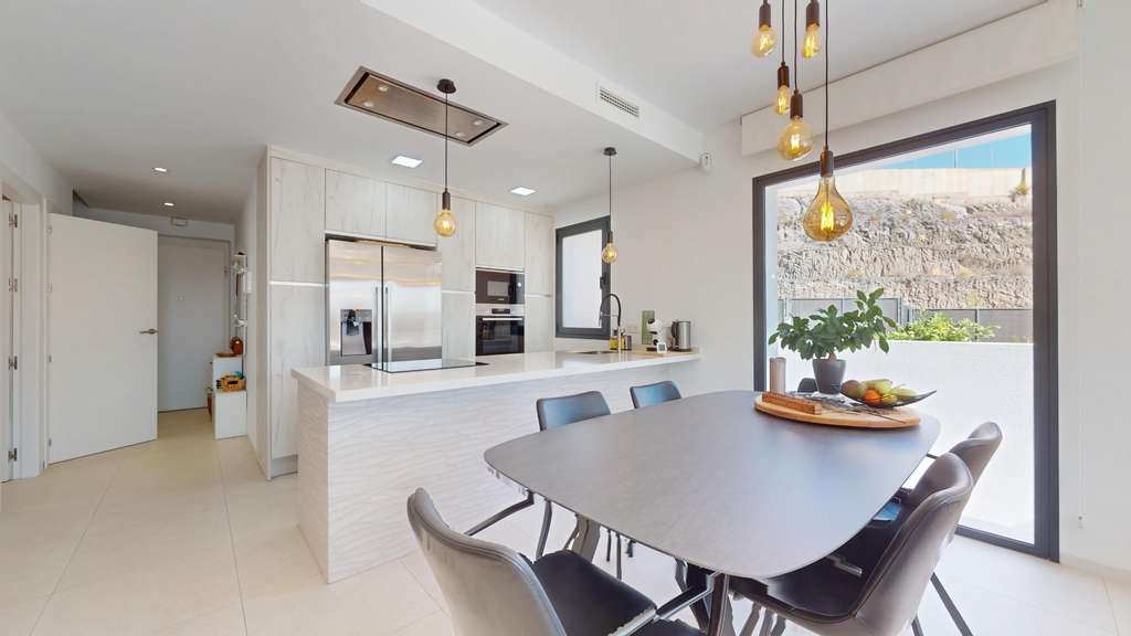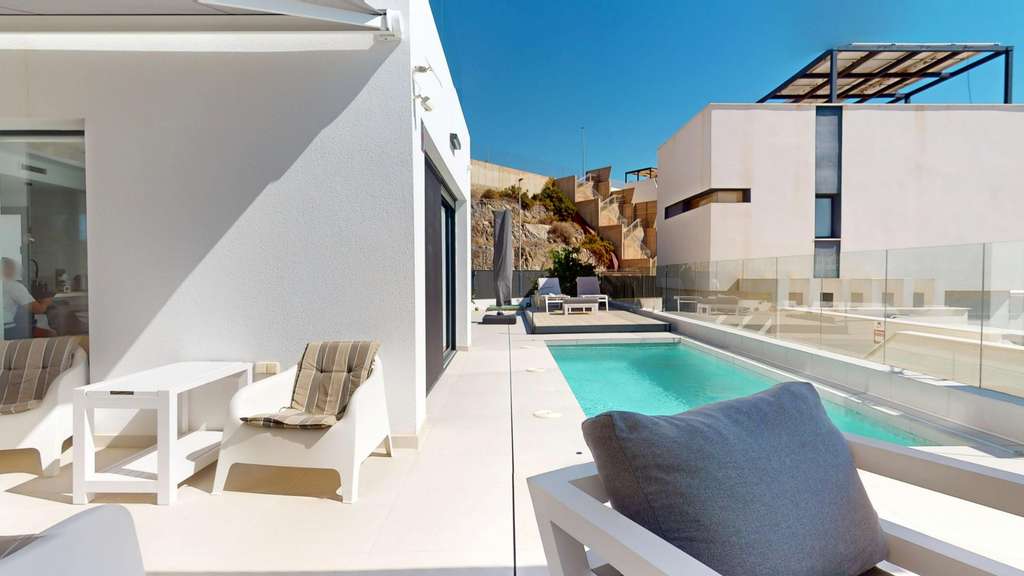 En su interior encontrarás 4 dormitorios, 3 baños completos, una cocina abierta integrada en el salón-comedor, espacios diseñados para disfrutar en familia y con amigos. Destacan sus impresionantes vistas al mar, que puedes disfrutar incluso desde la cama, y un espectacular solárium con zona chill-out, perfecto para relajarte y compartir momentos únicos.