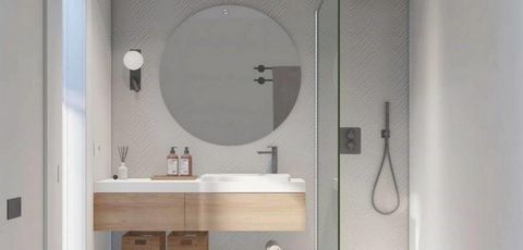 Los baños cuentan con sanitarios de diseño moderno, de porcelana vitrificada acabada en blanco, de la marca Roca y modelo Gap, con grifería monomando cromada o negro mate a elegir.