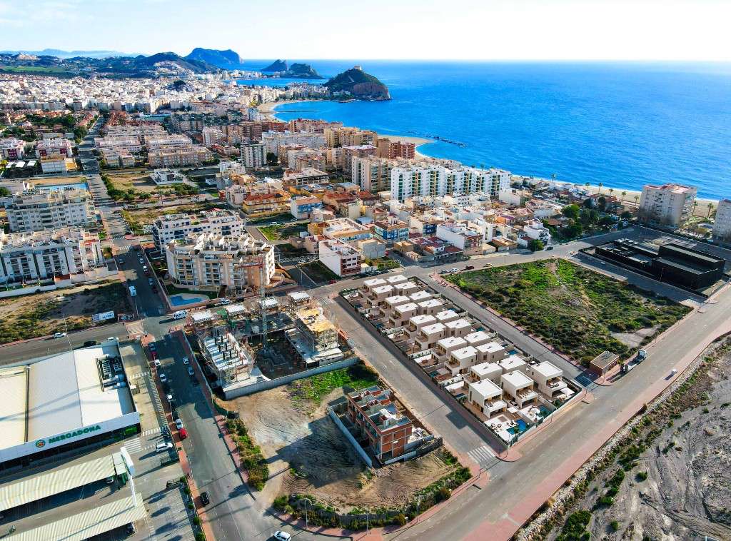 Nuevas villas en venta cerca de la playa en AguilasEl conjunto residencial está compuesto por 21 exclusivas villas de 3 dormitorios que combinan diseño moderno, calidad y funcionalidad. Una villa consta de un amplio salón-comedor, una cocina amueblada, 2 baños y sótano. Cada villa tiene su parcela independiente con terraza, jardín, piscina y plaza de aparcamiento.En cada vivienda, la empresa promotora realizó la preinstalación de los sistemas de climatización y bomba de calor de piscina.A pocos minutos se encuentran zonas comerciales con supermercado, restaurantes y todos los servicios que ofrecen las localidades de Los Geraneos y Aguilas.La zona tiene un clima cálido desértico durante todo el año y una temperatura media de 22º con temperaturas suaves en invierno y muy calurosas en verano.