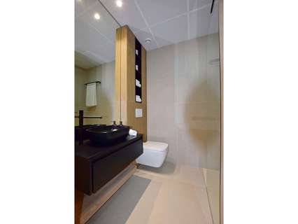 Cuartos de baño totalmente equipados con mueble de lavabo, inodoro suspendido, espejo, ducha mural y mamparas de ducha.