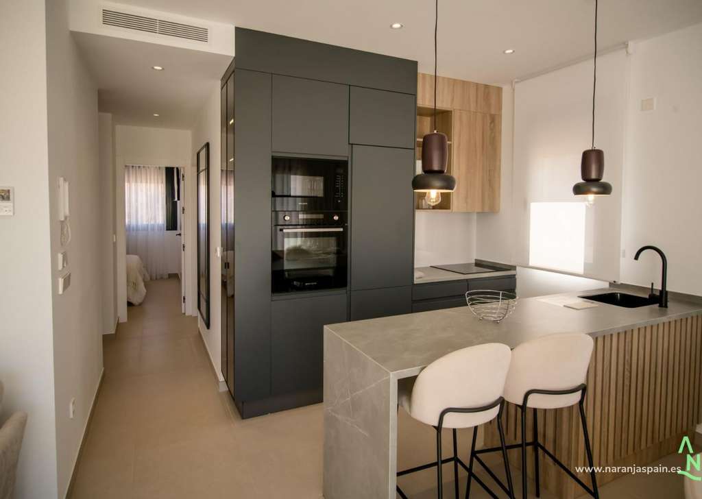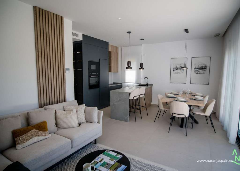 Todas las viviendas están diseñadas con un concepto contemporáneo de planta abierta, integrando una cocina totalmente equipada con la sala de estar y el comedor. Las amplias terrazas con cocina de verano amplían el espacio habitable al aire libre, lo que permite a los residentes disfrutar del clima cálido durante todo el año.