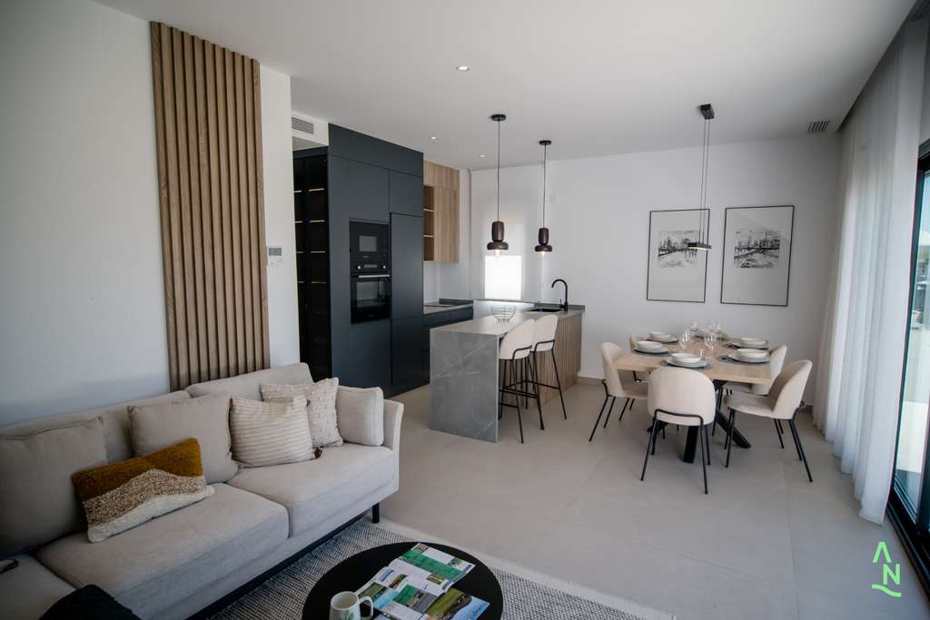 Entre las características destacadas del complejo, se incluyen cocinas de verano en las terrazas o solárium, carpintería exterior de aluminio termo lacado en color antracita con doble vidrio, baños revestidos en gres porcelánico beige e imitación madera roble, y carpintería interior lacada en blanco con manivelas negras. Cada bungaló también cuenta con electrodomésticos modernos, muebles de cocina en color antracita con encimera de porcelánico imitación piedra, y preinstalación de aire acondicionado.