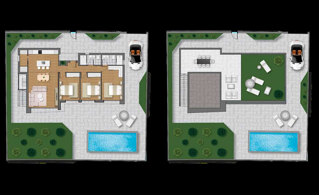 Imagina despertar cada mañana rodeado de vistas panorámicas impresionantes, mientras disfrutas de las comodidades que solo el lujo puede ofrecer. Nuestras villas están diseñadas con los mejores materiales de construcción, provenientes de fuentes locales (km0), garantizando así una construcción sostenible y de alta calidad.
