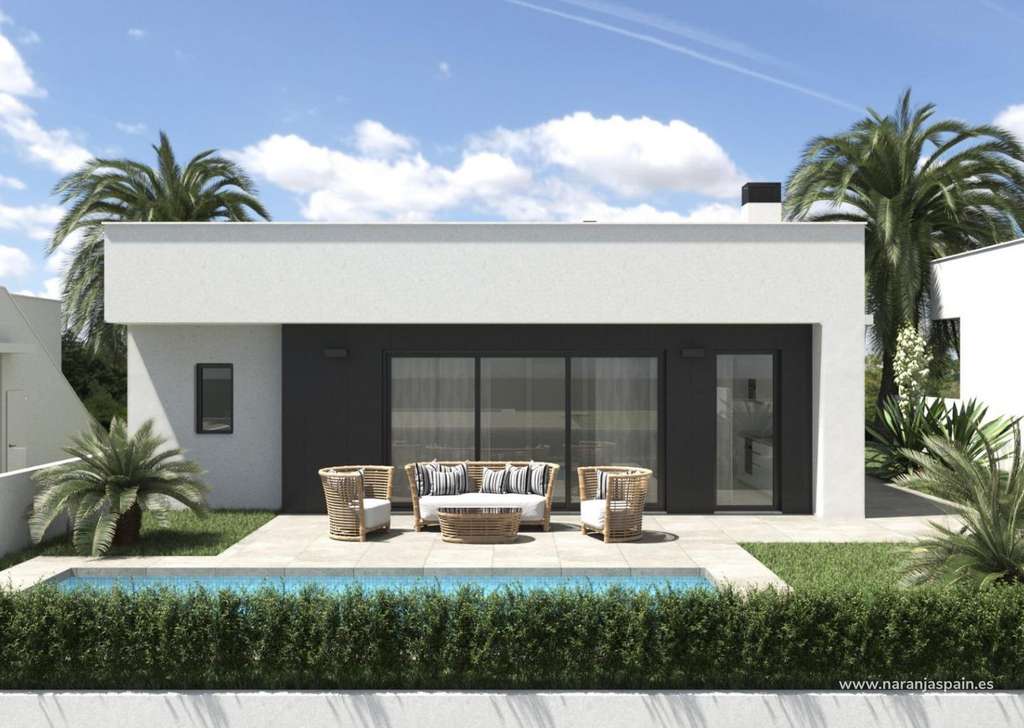 Villa de 3 dormitorios, 2 baños, una cocina-salón-comedor de 32.50m2, un lavadero, un porche de 16.57m2, un amplio jardín y un solárium de 69.40m2.