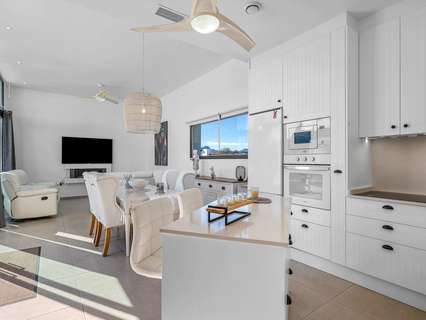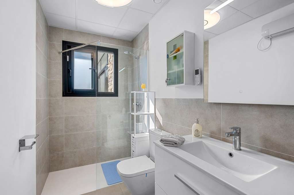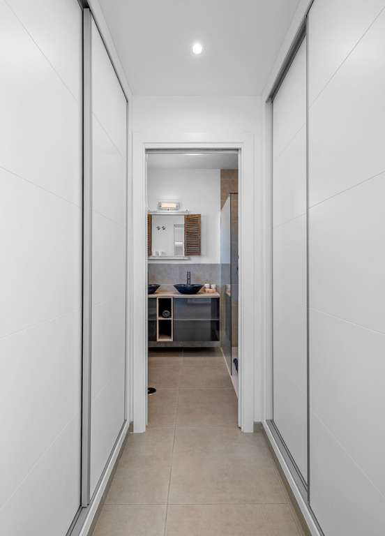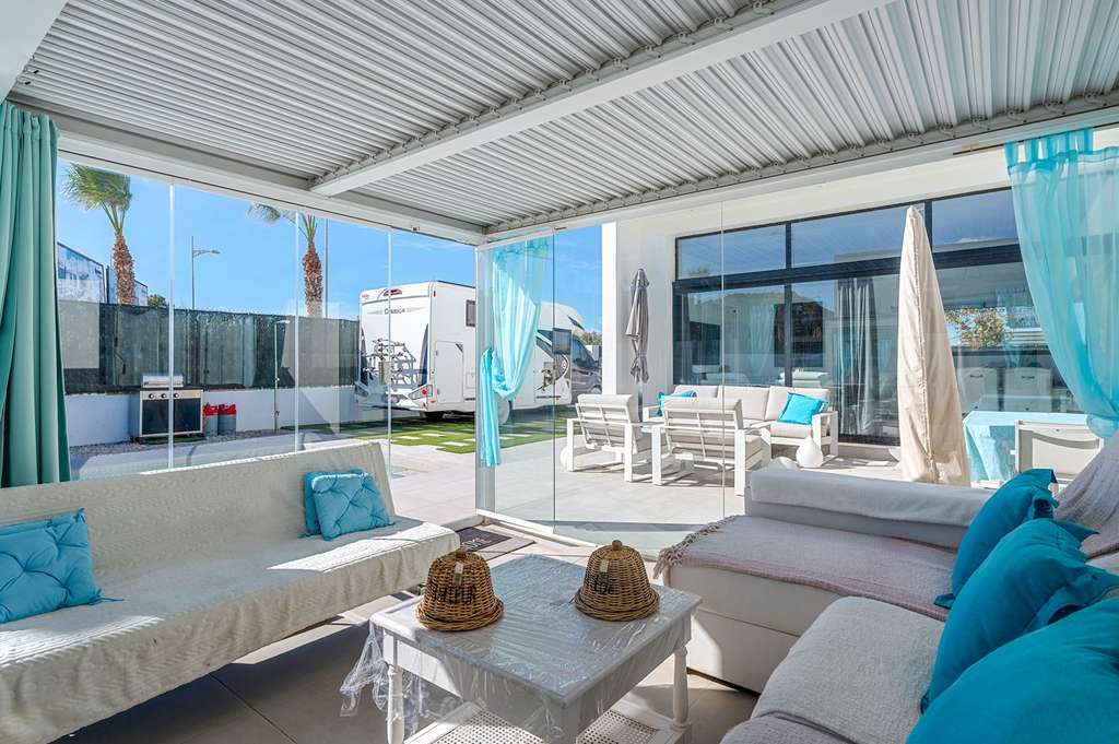 En una parcela de 545 m², podrá disfrutar de una distribución amplia y cómoda con 3 dormitorios, todos con persianas eléctricas, y dos elegantes baños, uno de ellos ensuite con doble lavabo y ducha de lluvia. La cocina rústica a medida está totalmente equipada con horno, microondas combinado, lavavajillas y lavadora, una clara mejora respecto a los modelos estándar.