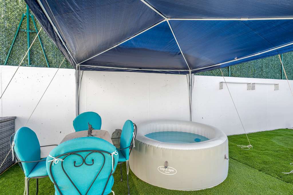 En el exterior encontrará una hermosa piscina privada de 24,5 m² con iluminación ambiental y ducha exterior, acompañada de una pérgola bioclimática acristalada que permite disfrutar del espacio todo el año. La parcela cuenta además con una puerta de acceso eléctrica, un sistema de alarma, un armario para material de piscina, mosquiteras y una puerta principal adicional para mayor comodidad. Gracias a los diez paneles solares, disfrutará de energía sostenible y bajos costes de consumo. Un amplio cobertizo de jardín de 3 x 6 metros, instalado con permiso oficial, ofrece más espacio de almacenamiento, y el jacuzzi hinchable completa el conjunto.