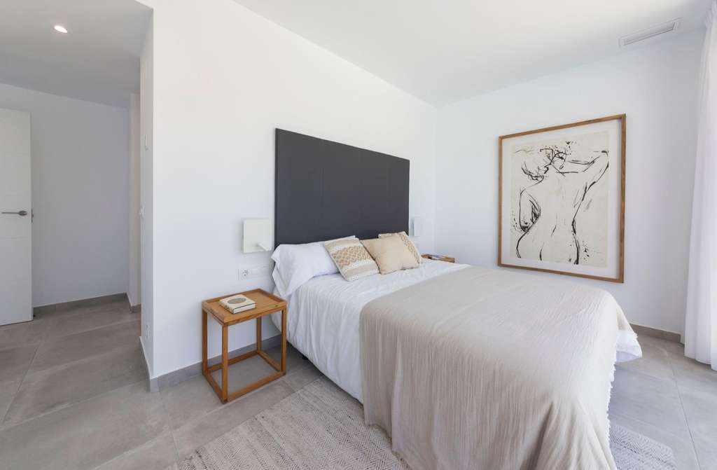 Ventanas de aluminio negro mate, persianas motorizadas, puerta de entrada a la vivienda acorazada, puertas de interiores lacadas en blanco, sistema de aerotermia para producción de agua caliente, encimera de cuarzo (silestone) en cocina, electrodomésticos incluidos, preinstalación de aire acondicionado por conductos.