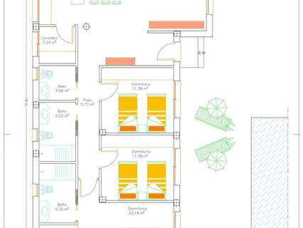 Las villas están diseñadas en una sola planta con zonas de terrazas a su alrededor y disponen de 3 dormitorios, incluyendo vestidor en el dormitorio principal, 2 baños y un aseo.