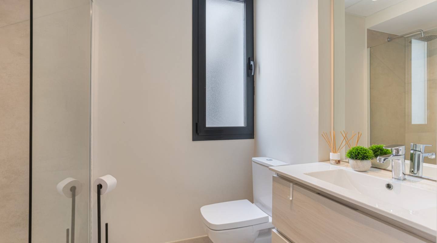 Dos baños completamente equipados, uno de ellos contiguo, diseñados con materiales modernos de alta calidad.