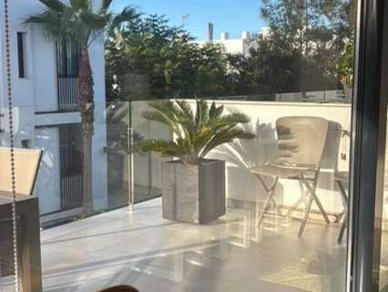 Elegante salón-comedor con acceso directo a una terraza privada, ideal para disfrutar del clima mediterráneo.
