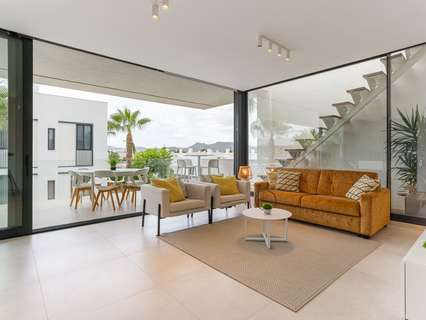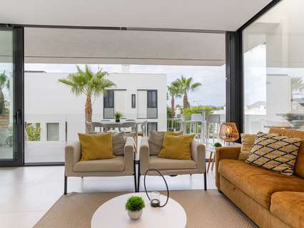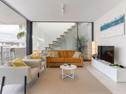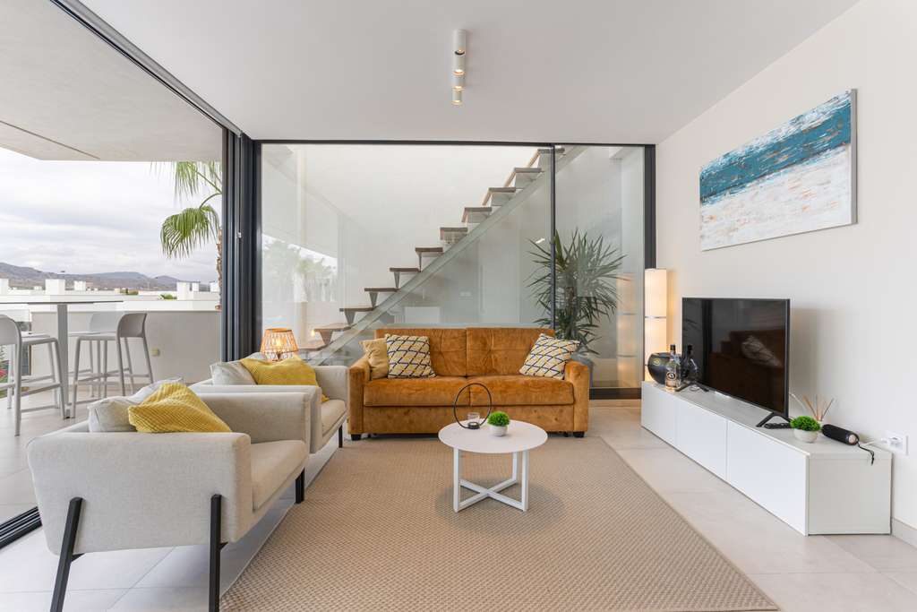 Un elegante salón con comedor y acceso directo a la terraza privada, perfecto para disfrutar del clima mediterráneo.