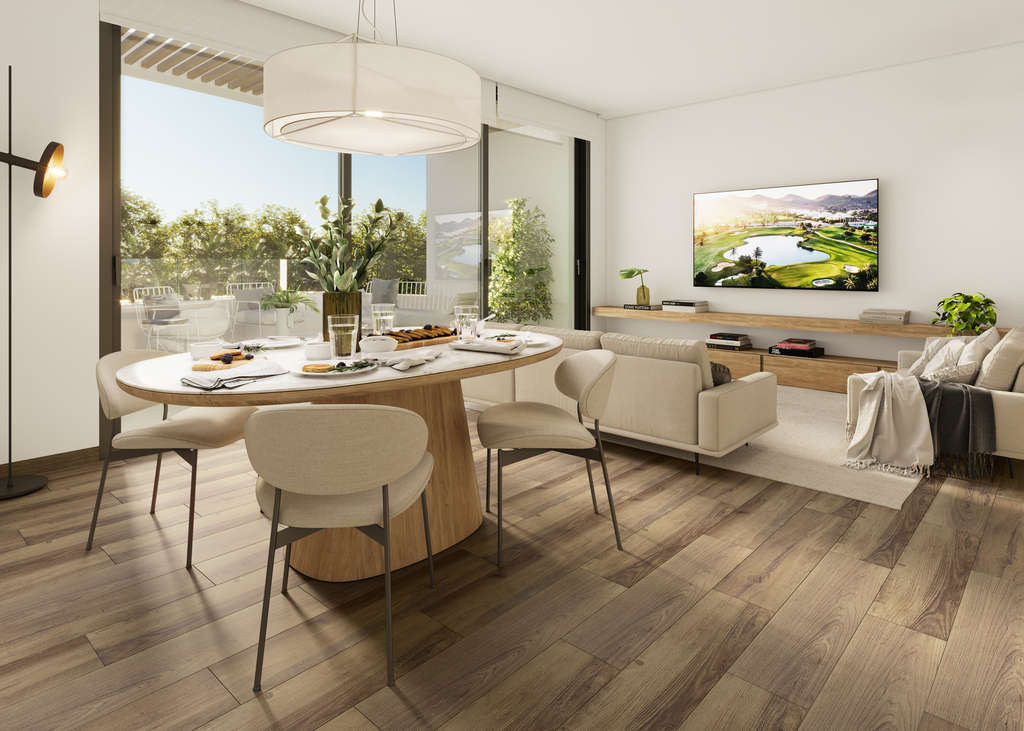 El interior de estas viviendas está pensado para quienes valoran la calidad y la comodidad. Equipadas con suelos de gres porcelánico, las propiedades no solo son estéticamente agradables, sino también duraderas. La inclusión de domótica y videoportero garantiza un control total y una seguridad óptima en el hogar. Además, las persianas eléctricas y los electrodomésticos integrados añaden un toque de modernidad, mientras que los armarios empotrados ofrecen soluciones de almacenamiento eficientes.