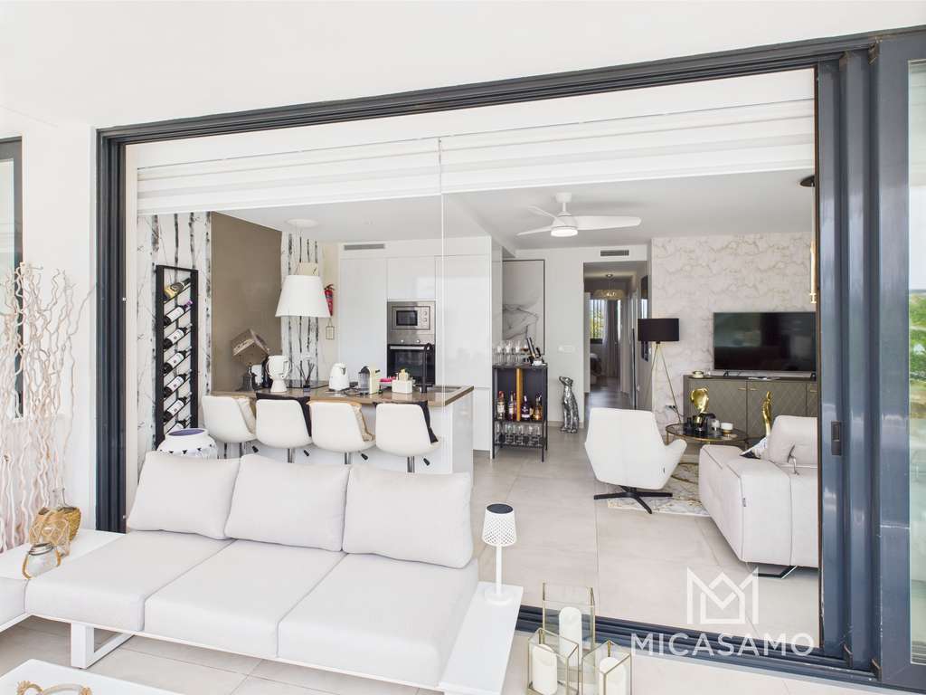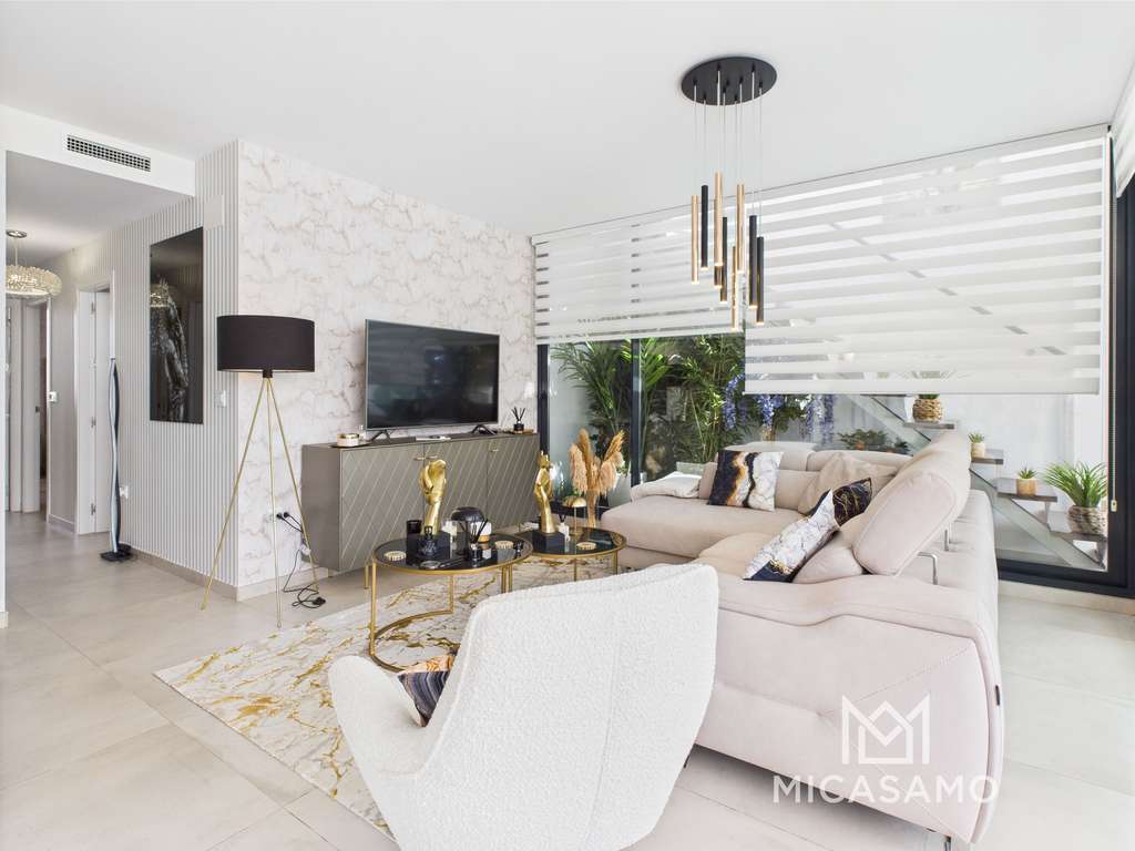 Piscina comunitaria - Solárium - Totalmente amueblado - Garaje. Este impresionante ático moderno en Mar de Cristal, España, ofrece la combinación perfecta de lujo y encanto costero. Situado a tan solo 500 metros de la playa, este apartamento presume de diversas características contemporáneas y vistas impresionantes. Características principales: Salón y cocina de concepto abierto: El corazón del apartamento es el salón y la cocina de concepto abierto. Las puertas correderas de cristal de suelo a techo en tres paredes inundan el espacio de luz natural y ofrecen vistas panorámicas de los alrededores. La moderna cocina presenta un diseño elegante con barra americana, ideal para cocinar y disfrutar de comidas informales. Terraza orientada al sur: El salón de concepto abierto conduce a una terraza orientada al sur con vistas a los jardines y la piscina comunitarios. Esta terraza es un espacio acogedor para relajarse, cenar y disfrutar del clima mediterráneo. Solárium en la azotea: Una característica destacada de este ático es el espacioso solárium en la azotea, con zona de relax y jacuzzi. Desde aquí, podrá disfrutar de impresionantes vistas al mar y a la montaña. Es un lugar excelente para celebrar reuniones, tomar el sol o contemplar las estrellas. Jardines y piscina comunitarios: El complejo de apartamentos ofrece hermosos jardines comunitarios y una piscina, un oasis de relajación para que los residentes se relajen y se refresquen en los días soleados. Cerca de la playa: A solo 500 metros de la playa, lo que lo hace ideal para paseos tranquilos o un rápido acceso a la costa. Mobiliario: La propiedad se puede vender parcial o totalmente amueblada, cuyo precio se negocia por separado. Mar de Cristal es un encantador pueblo costero que ofrece un entorno tranquilo a la vez que está cerca de servicios, restaurantes y actividades recreativas. Este ático contemporáneo en Mar de Cristal, España, encarna la esencia de la vida moderna con sus espacios interiores y exteriores integrados, que incluyen la terraza y el solárium en la azotea, lo que permite a los residentes disfrutar del estilo de vida mediterráneo. Ya sea que busque relajación o entretenimiento, esta propiedad ofrece la combinación perfecta de comodidad y estilo en un pintoresco entorno costero.