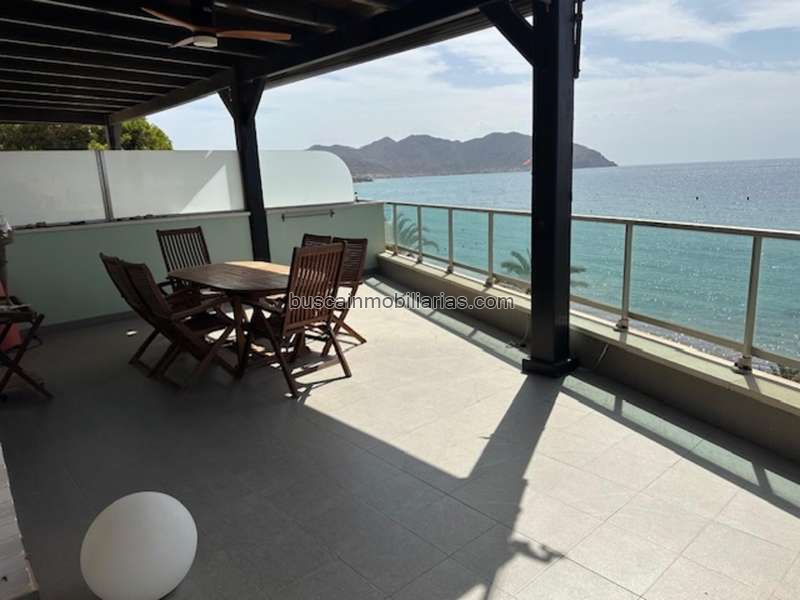 Isla Plana estupendo ático en primera linea de playa con terraza de 35 m, tiene otra terraza de 92 m., plaza de garaje. trastero y patio. La vivienda se encuentra totalmente amueblada se distribuye en cocina completa conectada al salón, 3 dormitorios, desde el salón se accede a la terraza de 35 m. con vistas al mar, carpintería interior de cerezo, 2 baños y 1 aseo, carpintería exterior de aluminio anodizado inox., 4 armarios empotrados, aire acondicionado y calefacción por conductos, ascensor.