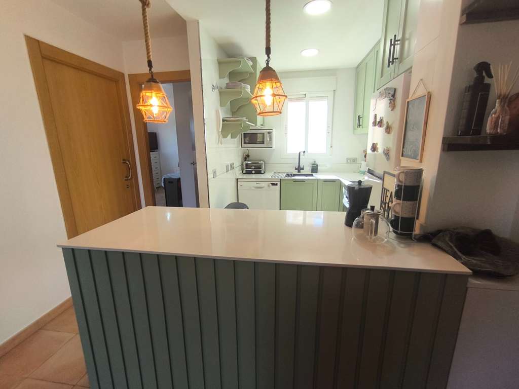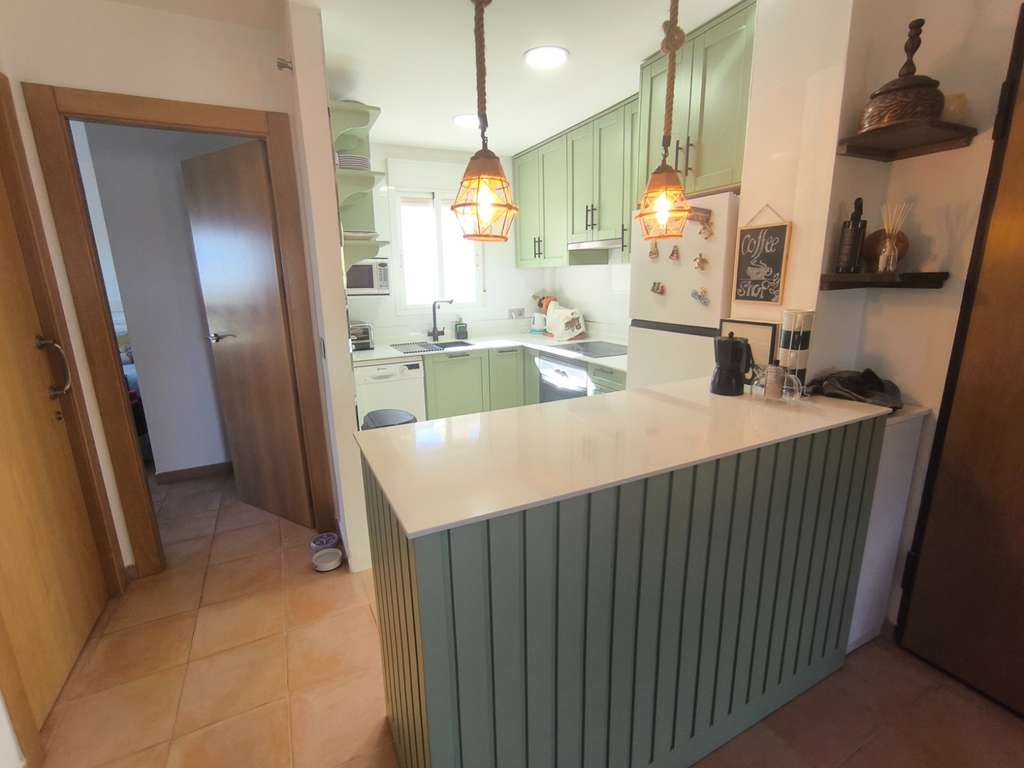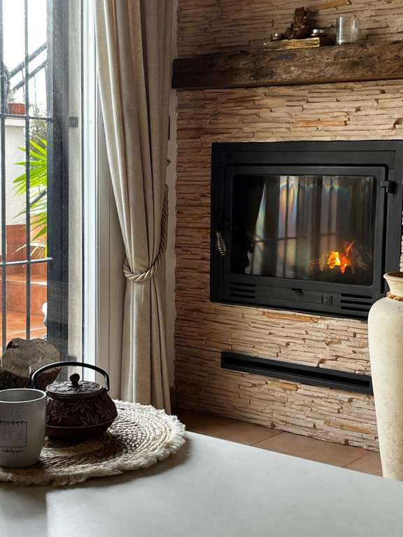 La vivienda destaca por su acogedor salón con chimenea de circulación de aire y revestimiento con aislamiento térmico y acústico, creando un ambiente cálido y eficiente durante todo el año. La cocina de concepto abierto, totalmente reformada, cuenta con barra de desayuno, fregadero bajo encimera y armarios con sistema de cierre amortiguado, combinando diseño moderno y funcionalidad.
