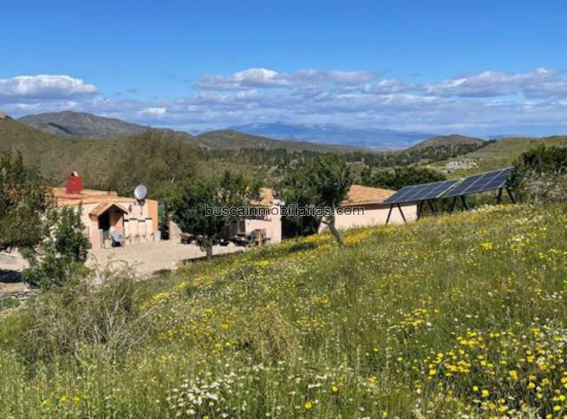 *** VIDEO AVAILABLE***A unique and charming property situated in the mountains overlooking Puerto de Mazarron and Isla Plana with panoramic views to the mountains and sea. If off-grid living is your thing, then this property is a must see! Set in over 40,000 sqm of land, nature is all around you. You have 4 bedrooms and 1 bathroom, 2 lounges, fireplace, log burner, garage and workshop plus those wonderful views.The property is located of the mountain road heading from Puerto de Mazarron to Cartagena in Murcia. Once you leave the main road, you have a 11 minute drive on fairly rough terrain until you reach the property but once there, it’s well worth it. You have a gravelled parking area and garage to the side of the house. Once you enter the property into the vestibule, you have two double bedrooms with lovely original wooden beams, ceiling fans and free standing wardrobes. The first lounge has lovely wood windows with wooden shutters, wooden beams throughout the ceiling and a large open, stone fireplace. Off the lounge is the third bedroom which is currently used as a study.Through the lounge leads to the scullery, fully equipped kitchen and pantry. The kitchen has oak wood upper and lower units, tiled worktops, double sink, gas hob and comes complete with all white goods. There are plenty other work surfaces in the scullery next to the kitchen. The second lounge again has a log burner set within a surround fireplace and lovely wooden beams giving the whole room a nice, warm cosy feel. The lounge is huge, with a dining area as well and fantastic views to the sea and surrounding mountains and countryside. The fourth bedroom has magnificent views to the sea and mountains. The bathroom has a shower unit, hand basin, cupboard space and W/C. It also houses the washing machine. The property has a build size of 213 sqm and is south facing.There are many different seating areas to enjoy the spectacular views. Some of the immediate garden is tiled or gravelled and there is a variety of trees, shrubs and plants all around the landscape. The garage and workshop, which are 70 sqm, sit next to each other and there is also a wood store. Next to this is where the solar settings and battery back ups are situated producing 3 kws for all your electrical needs. There are numerous water butts collecting all the water you need and a soak away for sewage waste. The property comes furnished and with all white goods. If you are looking for a hideaway with tranquillity, privacy and nature, this is definitely the place for you! The property has no mains water or electricity. Valdelentisco valley is the picturesque route from the Puerto de Mazarron up the mountain and onto Cartagena. Popular with cyclists and has also had car rally competitions held here. It is just a short drive down to the coast for the beaches, bars, restaurants and shopping of Puerto de Mazarron and Isla Plana.