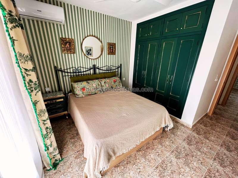 En la planta superior, dispondrá de dos dormitorios, uno amueblado con cama de matrimonio y muebles empotrados, predominando el color verdoso en su decoración, y además, dispone de una terraza ubicada hacia el este donde podrá disfruta de los primeros rayos solares al amanecer. El segundo dormitorio se ofrece sin muebles, ideal para un segundo dormitorio o para instalar un despacho para teletrabajar desde casa.