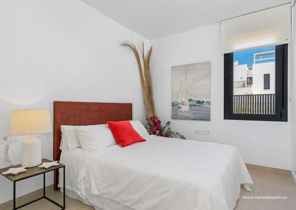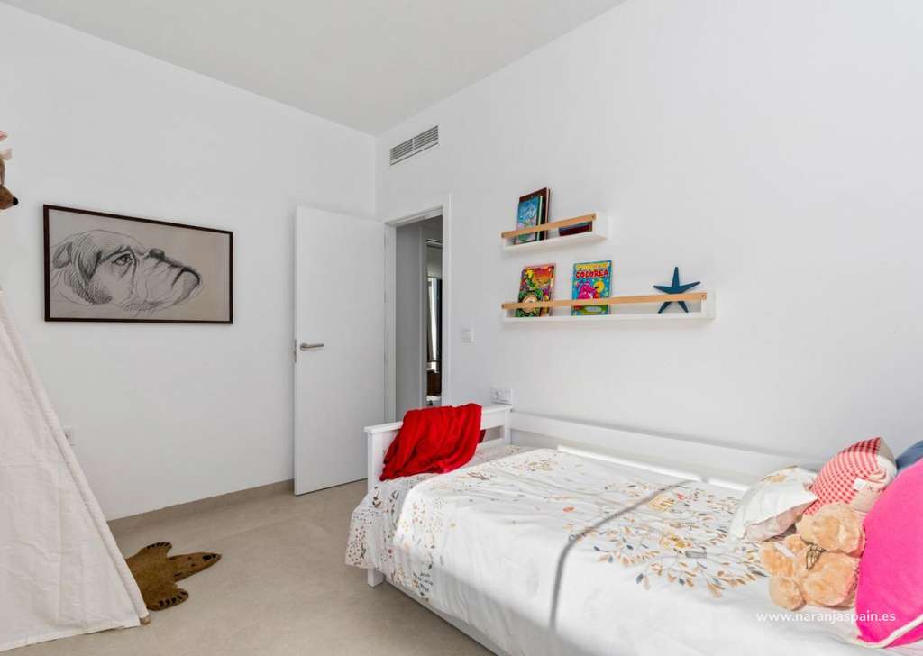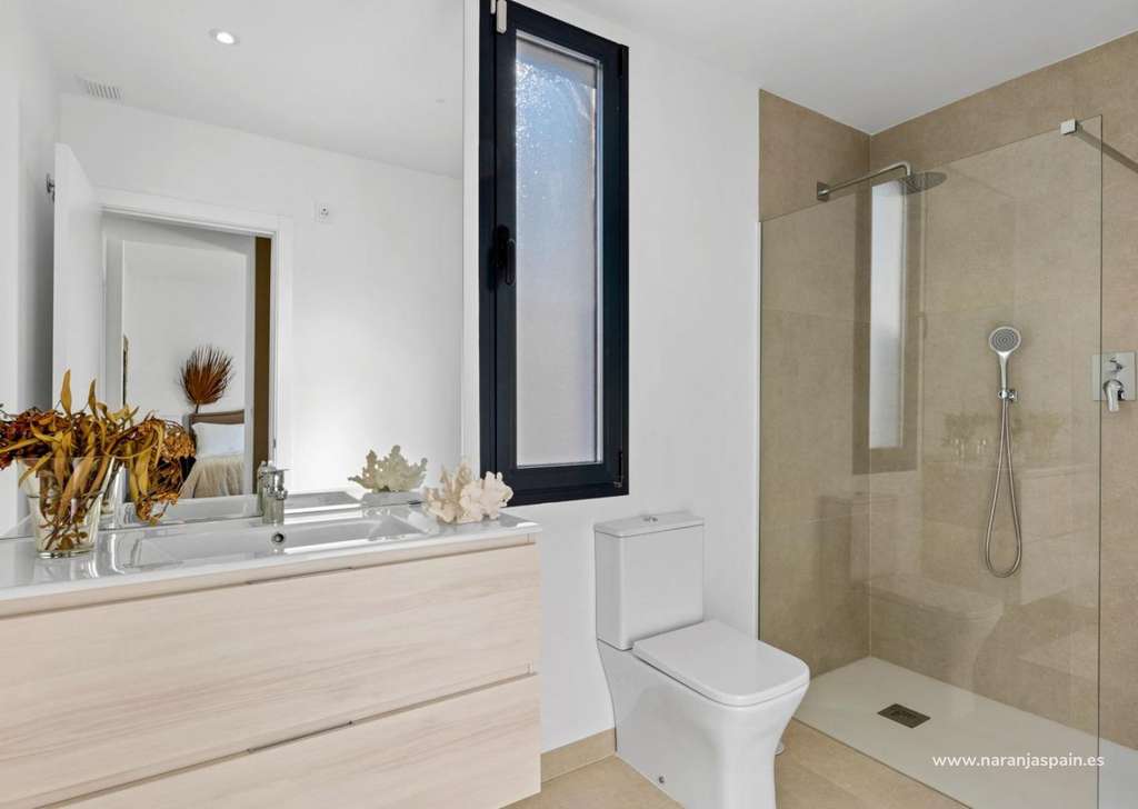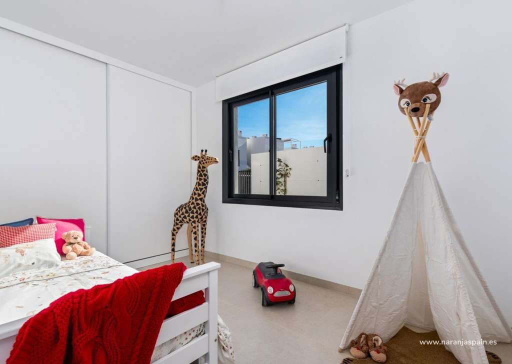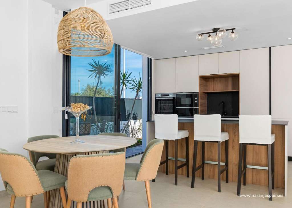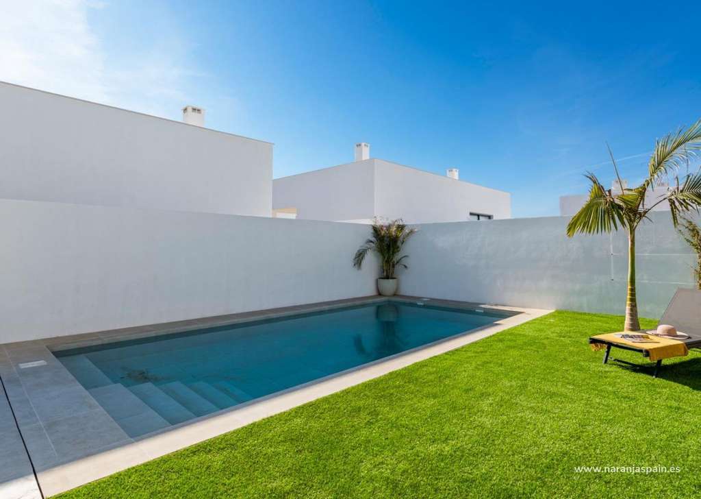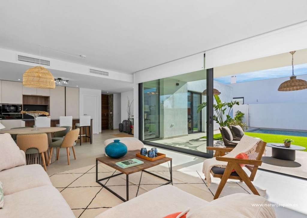 Villa de nueva construcción de una sola planta con 3 dormitorios, 2 baños y solarium privado a 500 metros de las playas de Mar De Cristal.