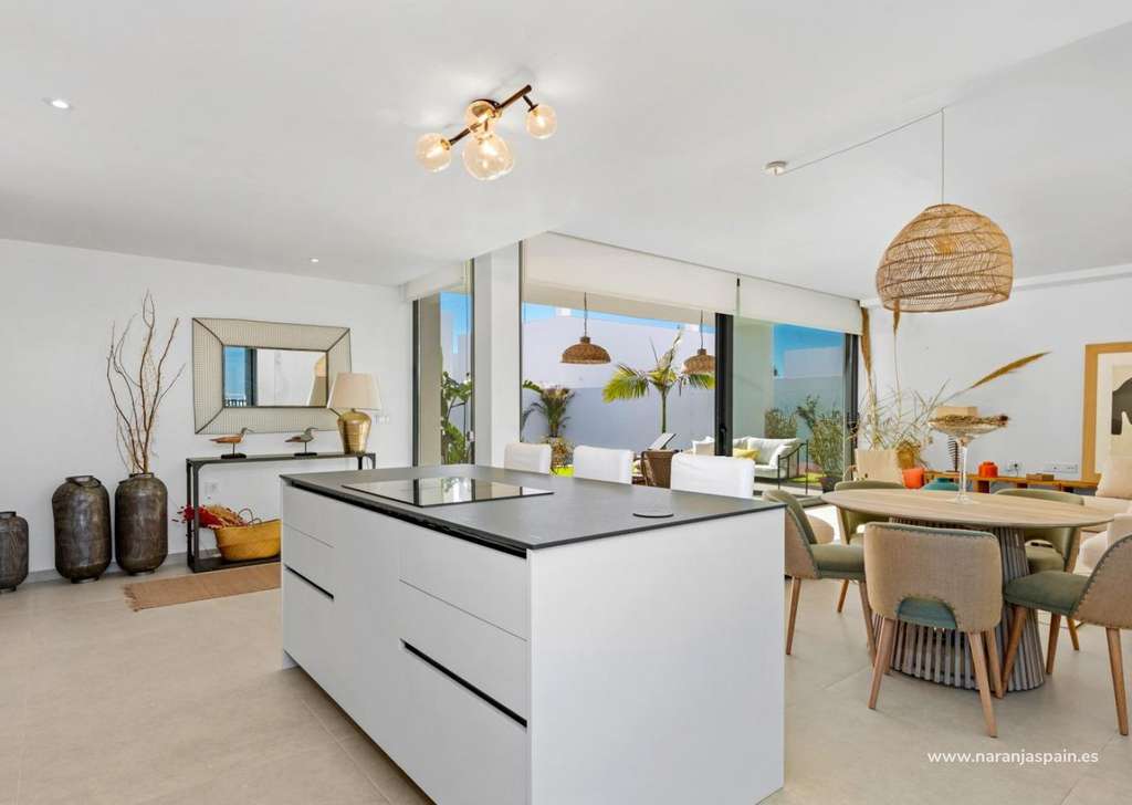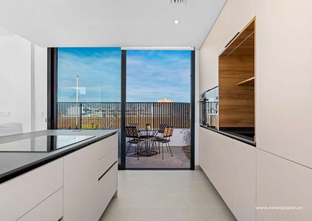 Las villas tienen una moderna cocina abierta con la sala de estar, donde las altas ventanas correderas tiene acceso al jardín con piscina privada y plaza de aparcamiento.