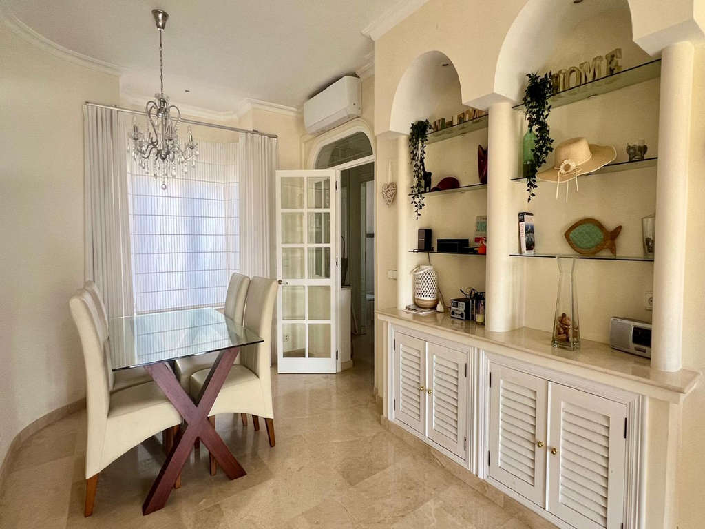 Esta hermosa casa adosada de tres dormitorios y tres baños combina a la perfección comodidad, funcionalidad y diseño moderno. Ubicada en una tranquila comunidad, ofrece amplias salas de estar, amplio espacio de almacenamiento e impresionantes espacios exteriores con pintorescas vistas. Al entrar, le da la bienvenida una luminosa entrada con un práctico armario. Este conduce al comedor, que se integra a la perfección con el salón de planta abierta y la cocina totalmente equipada. Grandes ventanales inundan el espacio de luz natural, creando un ambiente cálido y acogedor. El salón cuenta con estanterías empotradas y armarios, y ofrece acceso directo a la terraza de la planta baja, donde encontrará una barbacoa al aire libre, ideal para disfrutar del entretenimiento y a poca distancia de la piscina comunitaria. Subiendo a la primera planta, encontrará dos amplios dormitorios, uno de ellos con baño en suite. La luz natural realza dos de los tres baños, garantizando un ambiente luminoso y refrescante. La planta superior está dedicada al dormitorio principal, con un baño bellamente reformado con ducha a ras de suelo. Desde aquí, salga a la amplia terraza, donde podrá disfrutar de impresionantes vistas a los jardines, la piscina comunitaria, las montañas lejanas e incluso al mar. Además, esta casa ofrece un espacioso sótano, muy luminoso, con abundante espacio de almacenamiento y estanterías preinstaladas, lo que la convierte en una zona muy funcional y versátil. Con su cuidado diseño, luz natural y un entorno idílico, esta casa adosada es la opción perfecta para quienes buscan un hogar tranquilo y bien conectado. ¡No pierda la oportunidad de hacerla suya!