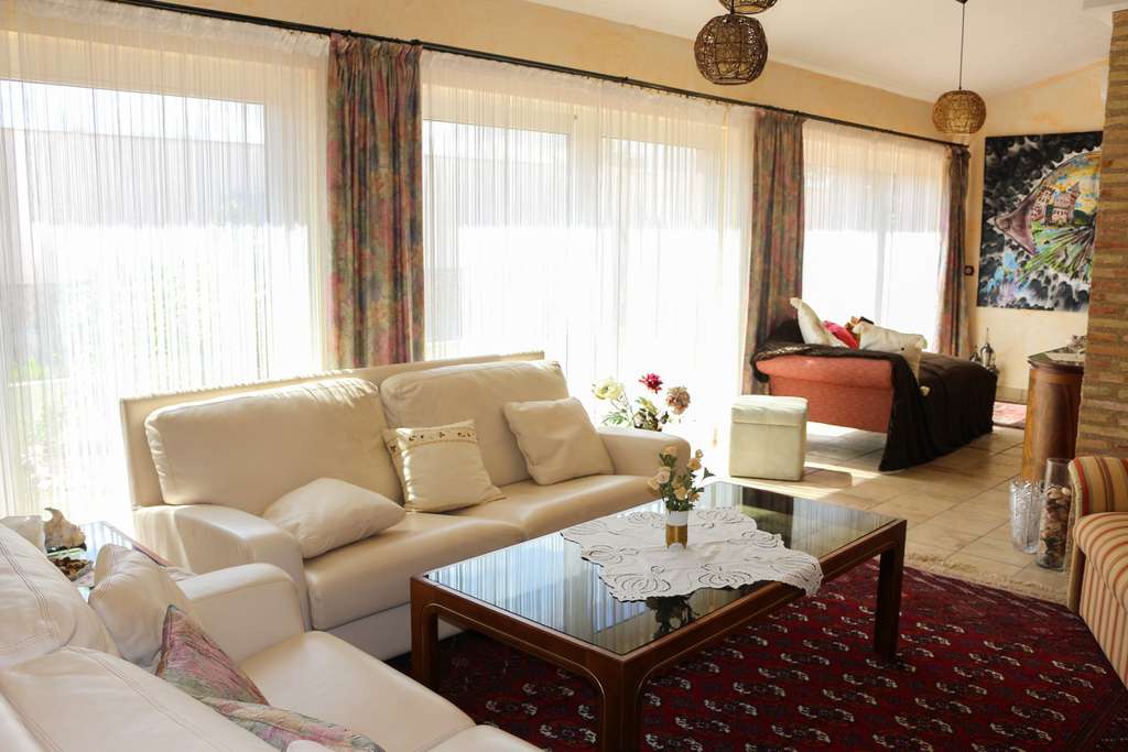 La vivienda cuenta con 4 amplios dormitorios y 3 baños, además de 2 salones, 2 comedores y una cocina totalmente equipada, ideal para familias numerosas o quienes disfrutan de recibir invitados. Dispone de varias terrazas para aprovechar al máximo el excelente clima de la región. Entre sus múltiples extras destacan una magníficasauna privada, una bodega, barbacoa exterior,piscina privada, y un amplio garaje.