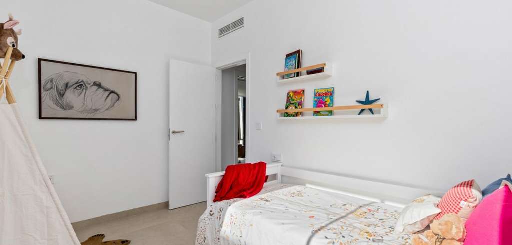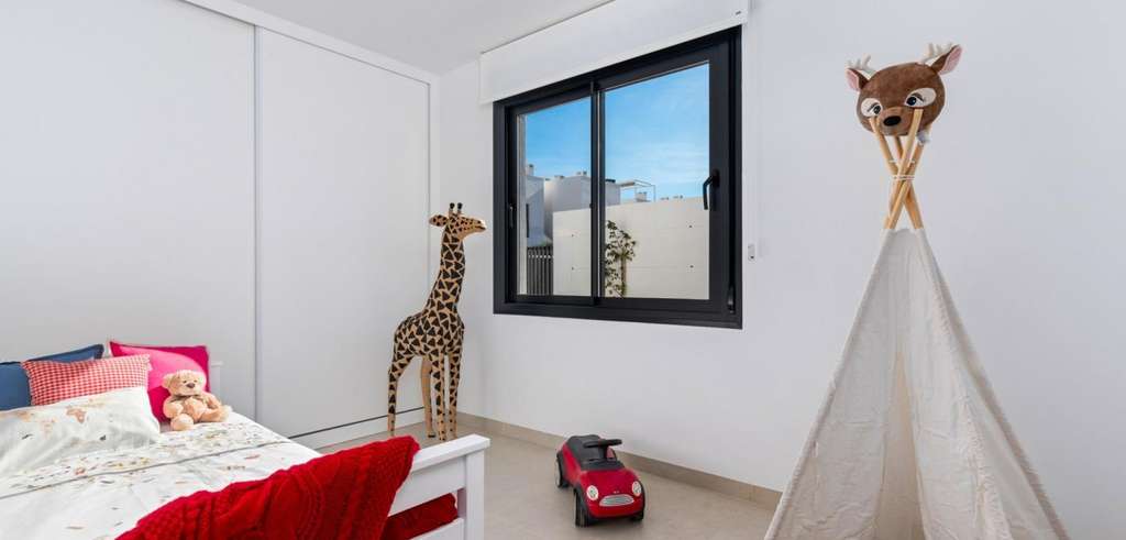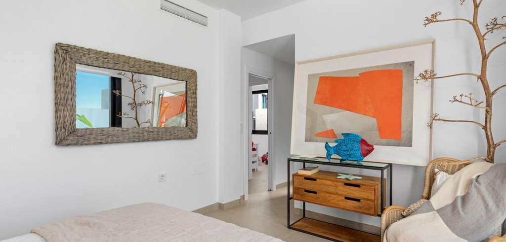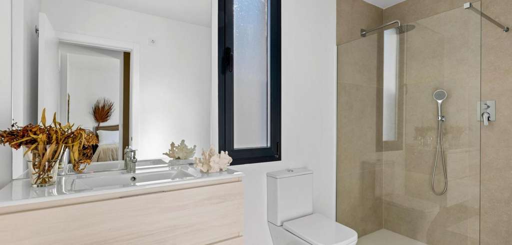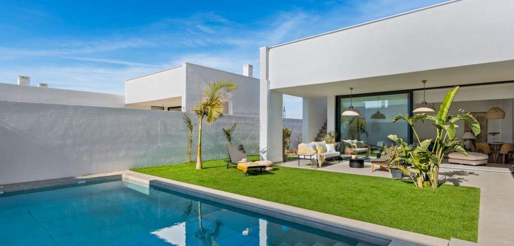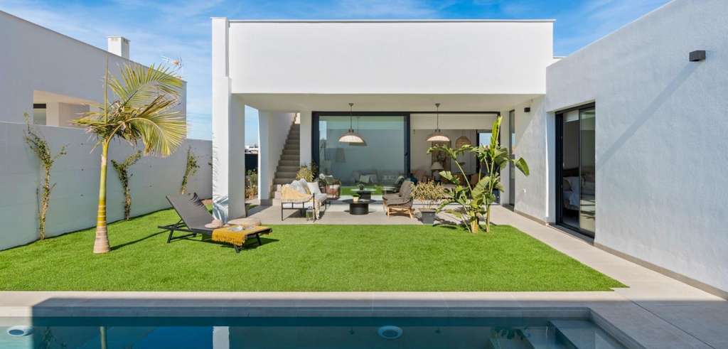 Villa de nueva construcción de una sola planta con 3 dormitorios, 2 baños y solarium privado a 500 metros de las playas de Mar De Cristal.