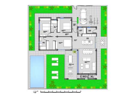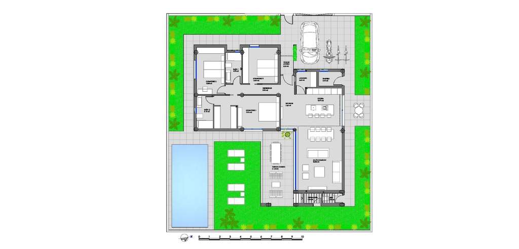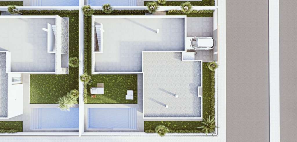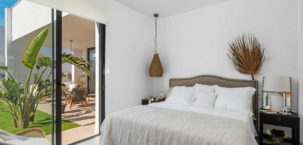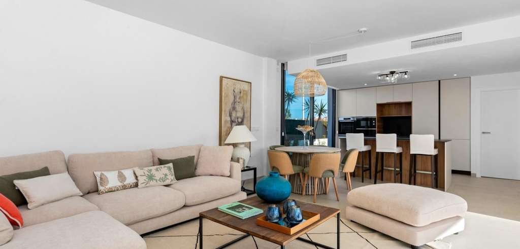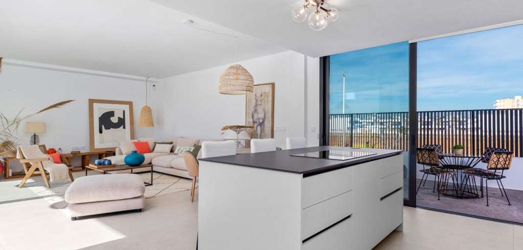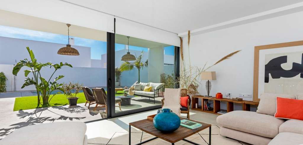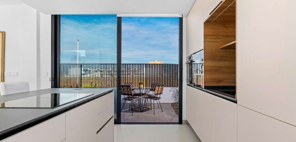 Las villas tienen una moderna cocina abierta con la sala de estar, donde las altas ventanas correderas tiene acceso al jardín con piscina privada y plaza de aparcamiento.