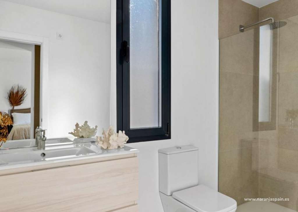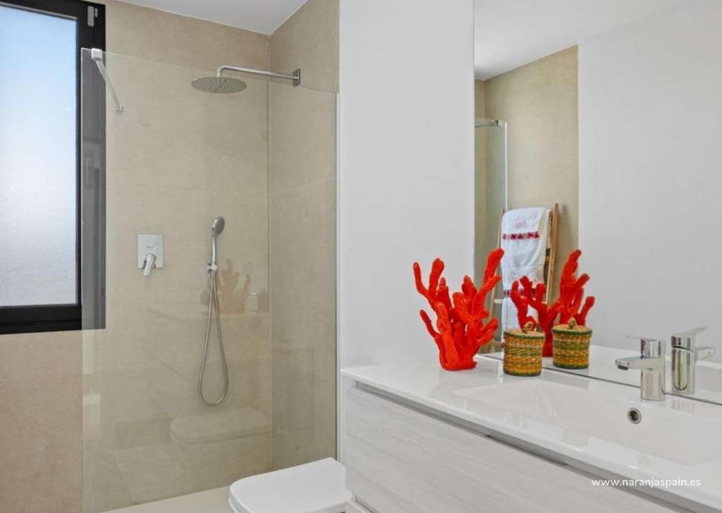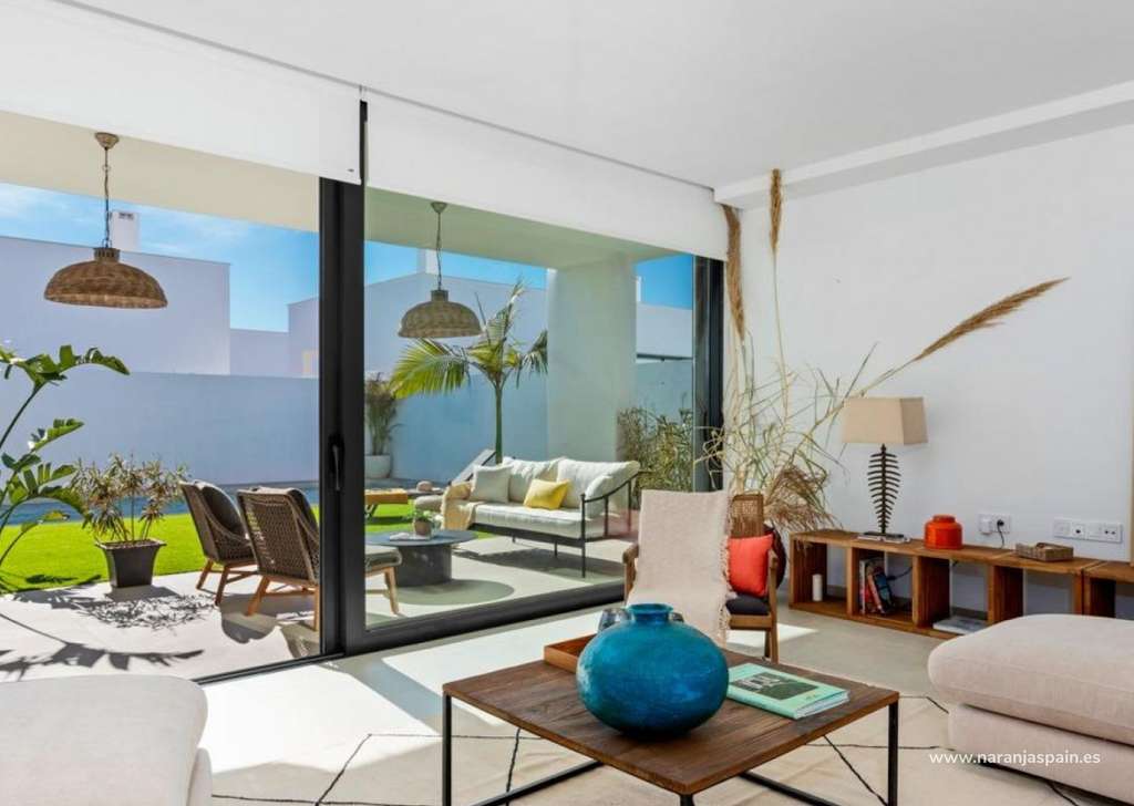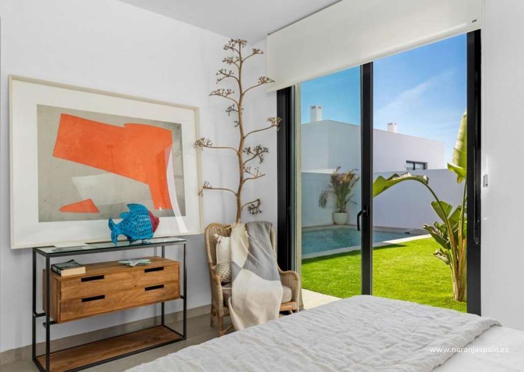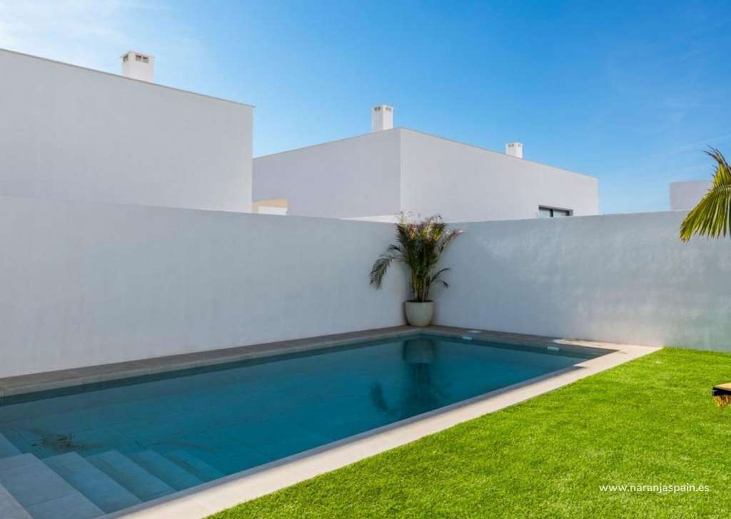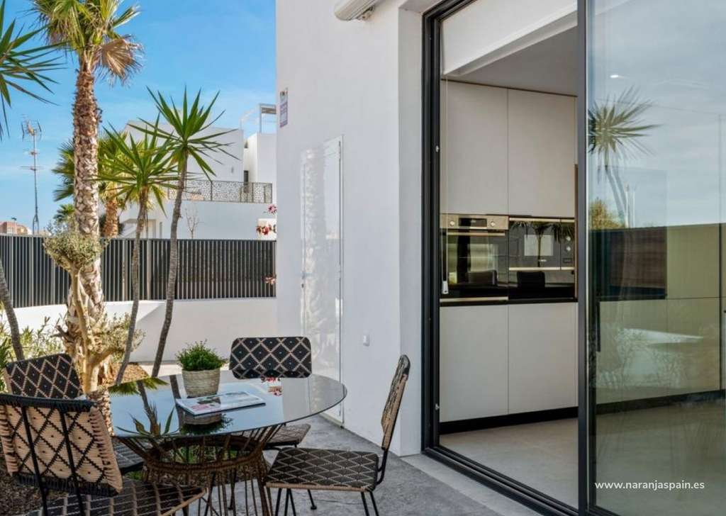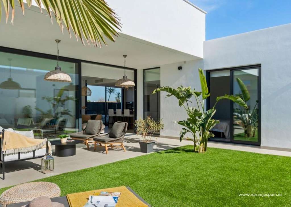 Villa de nueva construcción de una sola planta con 3 dormitorios, 2 baños y solarium privado a 500 metros de las playas de Mar De Cristal.