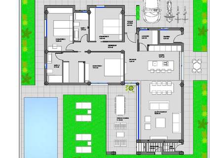 Villa de nueva construcción de una sola planta con 3 dormitorios, 2 baños y solarium privado a 500 metros de las playas de Mar De Cristal.