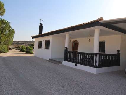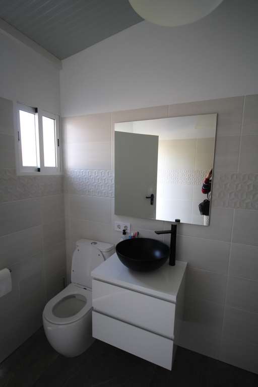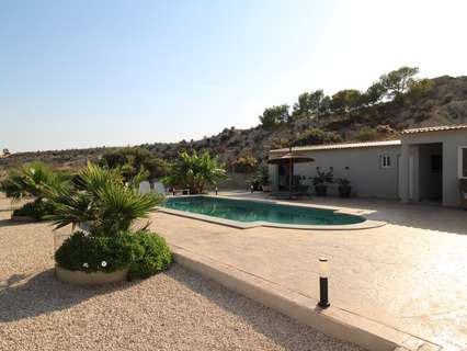 Esta bonita villa se encuentra a solo 2 km del pueblo, con todos los servicios, y a menos de 3 km del spa. Ha sido renovada con buen gusto y es realmente magnífica. Consta de recibidor, amplio salón, cocina americana, lavadero, trastero, 3 dormitorios y 2 baños, uno de ellos en suite. Hay una terraza cubierta a un lado de la casa y un ventanal conduce directamente desde el salón a la magnífica piscina. Junto a la piscina hay una casita de 50 m² con una magnífica cocina, baño y trastero, que podría convertirse fácil y económicamente en un dormitorio adicional. El jardín ha sido cuidadosamente diseñado con numerosas plantas locales y árboles frutales (palmeras, plátanos, aguacates, pasiflora, cerezos, higueras, naranjos, limoneros, etc.). También hay una cochera para 3 vehículos y la puerta de entrada tiene motor eléctrico. Esta villa cuenta con todas las comodidades modernas: fibra óptica para internet, agua potable, electricidad y aire acondicionado. Esta es una villa verdaderamente excepcional que merece ser vista para apreciarla en su totalidad. A 50 minutos del aeropuerto de Alicante y de las playas, 20 minutos de Murcia.