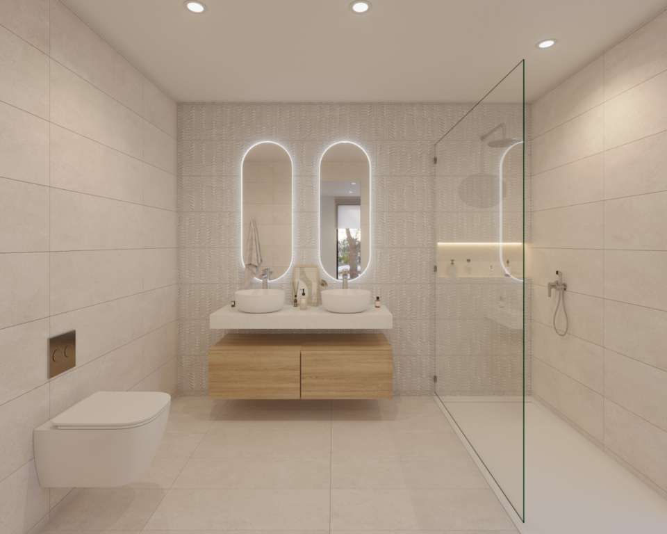 Situada en amplias parcelas en primera línea de golf a partir de 882 m², ESTA villa ofrece una generosa superficie habitable de 146,45 m², totalmente en planta baja y diseñada con atención al confort, el estilo y la funcionalidad.