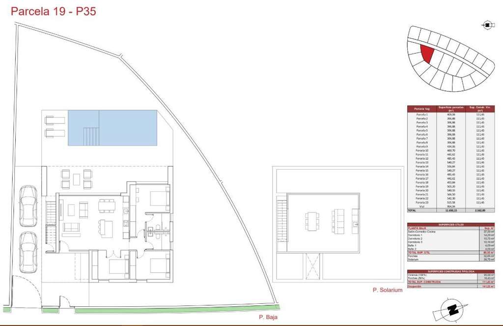 Cada propiedad ofrece una distribución espaciosa con 3 dormitorios y 2 baños en una sola planta. Solárium privado en azotea. Con parcelas a partir de 396 metros cuadrados y una superficie construida de 111 metros cuadrados, estas viviendas ofrecen un amplio espacio para la vida interior y exterior.