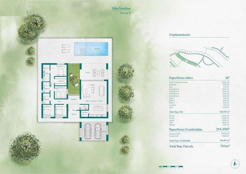 Cada propiedad ofrece una distribución espaciosa con 4 dormitorios, 3 baños y un aseo de invitados, en un diseño en una planta. Con generosas parcelas de alrededor de 700 metros cuadrados y una superficie construida de 214 metros cuadrados, estas viviendas ofrecen un amplio espacio para la vida interior y exterior.