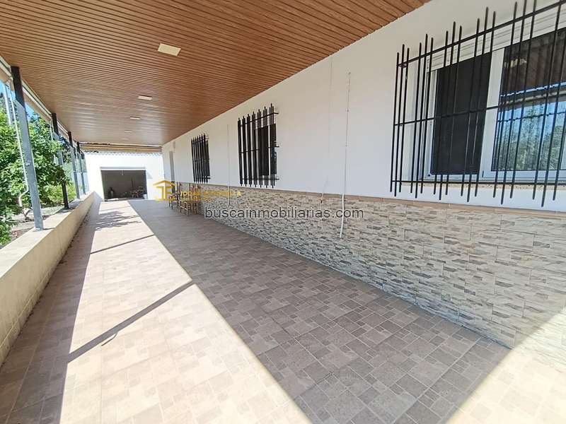 Toda la fachada tiene un porche de unos 60 metros.la parcela de unos 1400 se encuentra totalmente vallada.