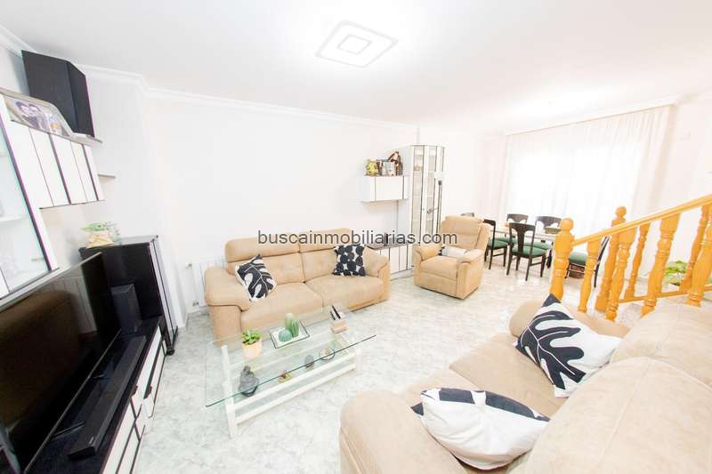 El corazón de la vivienda lo forman sus espacios de día: un salón-comedor muy amplio y luminoso, con suelos de gres marmoleado y zona de comedor junto al ventanal, perfecto para reuniones familiares.