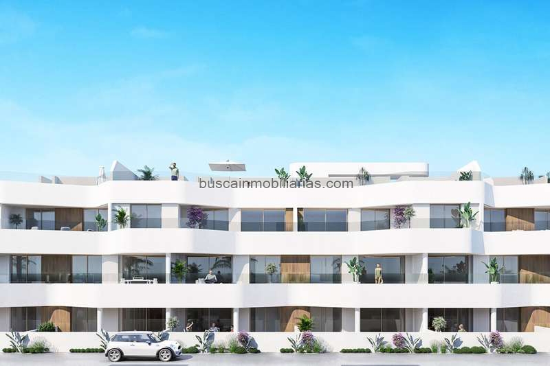 Los apartamentos varían en tamaño, desde los 89 m² hasta los 198 m², y algunas unidades en las plantas superiores incluyen un espectacular solárium de más de 60 m², ideal para relajarse o disfrutar de reuniones al aire libre. El bloque residencial dispone de ascensor y está diseñado para maximizar las vistas al campo de golf y al Mar Menor.