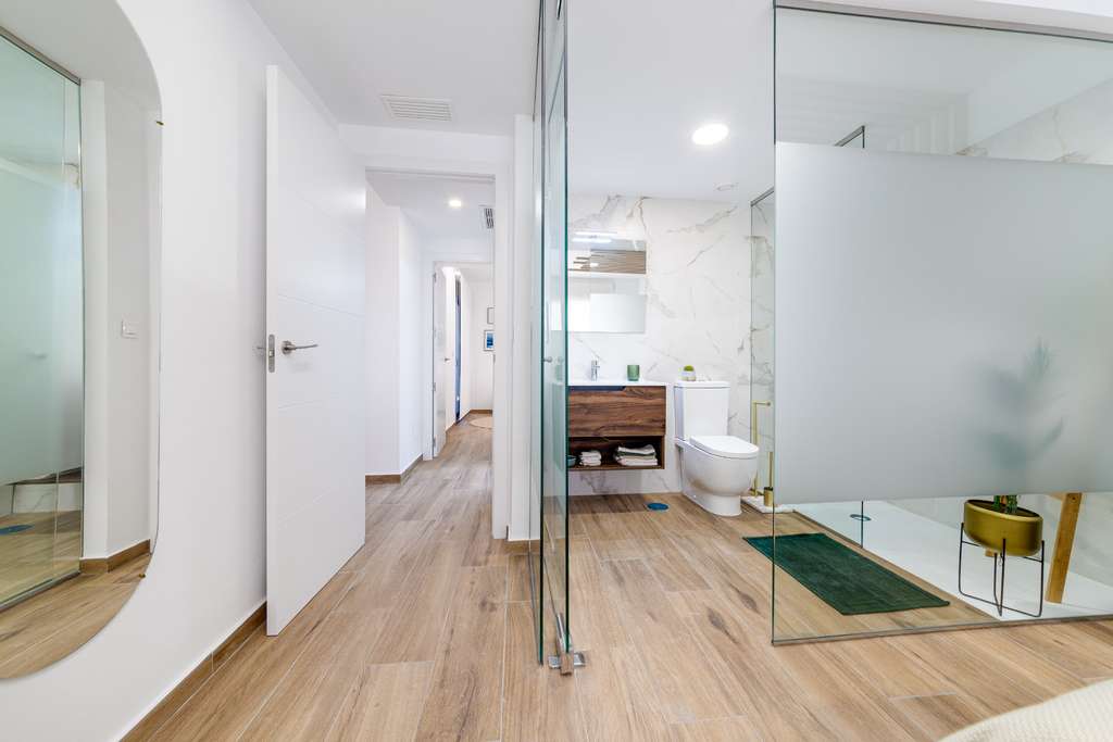 Apartamentos con dos o tres dormitorios y dos baños, salón con cocina abierta y parking subterráneo incluido.Los apartamentos contarán con amplia terraza, y los de 4to piso con solarium privado.