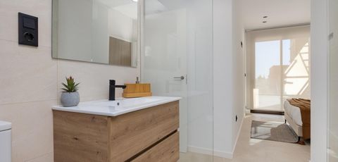 Apartamentos modernos en 3 plantas (planta baja más 2), planta baja con bonitos jardines, y algunos de ellos con piscina privada y segunda planta con bonitas terrazas y solariums privados.