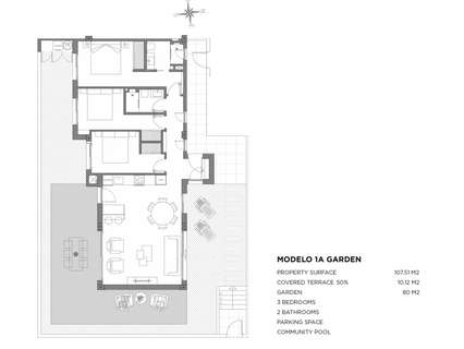 Elija entre apartamentos de 2 o 3 dormitorios, todos con 2 baños (uno en suite) y amplias zonas exteriores. Las viviendas de la planta baja cuentan con jardines privados, las de las plantas intermedias ofrecen amplias terrazas y los áticos de la planta superior incluyen soláriums privados, perfectos para disfrutar del sol, comer al aire libre o simplemente relajarse en su propio refugio de paz.