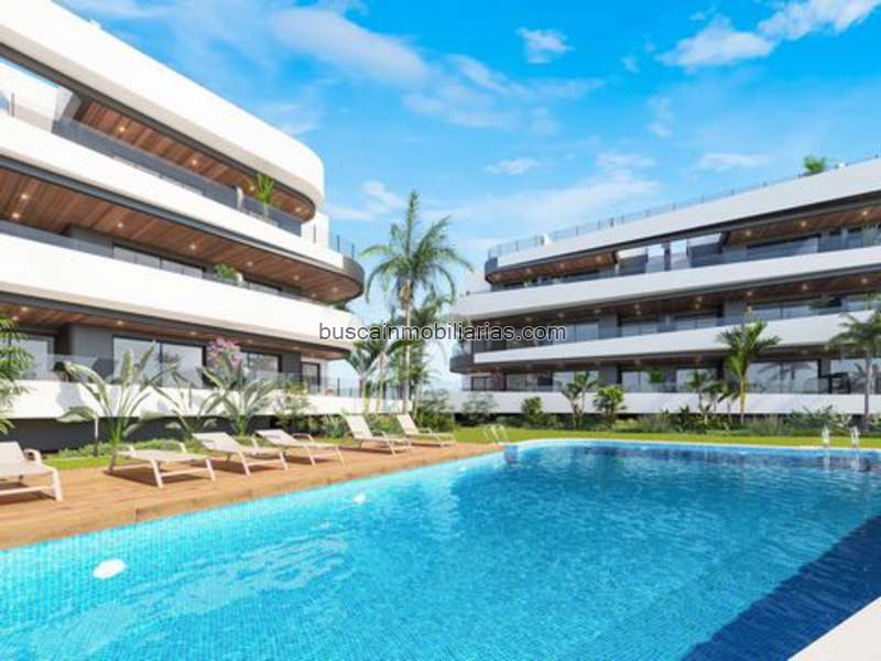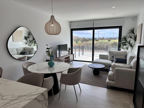 These modernly designed apartments in La Serena Golf offer a bright and stylish living experience with a warm Mediterranean atmosphere. The layout is spacious, practical, and focused on comfort, making it ideal for both permanent residence and holidays. You can choose from various types of apartments to suit different living preferences. The ground floor apartments feature a large private terrace, perfect for outdoor living. The middle floor apartments offer a low-maintenance terrace, ideal for those seeking convenience and tranquility. The top floor apartments boast a generous rooftop terrace with panoramic views over the sea, the golf course, and the green surroundings. Each apartment has 2 or 3 bedrooms, 2 bathrooms, open living spaces, pre-installation for air conditioning, built-in wardrobes, and electric shutters. The outdoor areas are designed to make the most of the Costa Cálida climate. Residents benefit from spacious terraces, sunny rooftop terraces, and a beautifully landscaped communal garden with a large swimming pool that invites relaxation and refreshment. The location is excellent. Los Alcázares is nearby and offers supermarkets, restaurants, medical facilities, and the Dos Mares shopping center. Cartagena is only a 20-minute drive away, Murcia is 35 minutes away, and both Murcia and Alicante airports are easily accessible. This combination of tranquility, sunshine, and proximity to amenities makes the area particularly attractive. Additional advantages include underground parking, energy-efficient features, and secure access to the complex. Are you ready to discover your new apartment in La Serena Golf? Schedule a personal viewing today and experience this unique residential location for yourself.